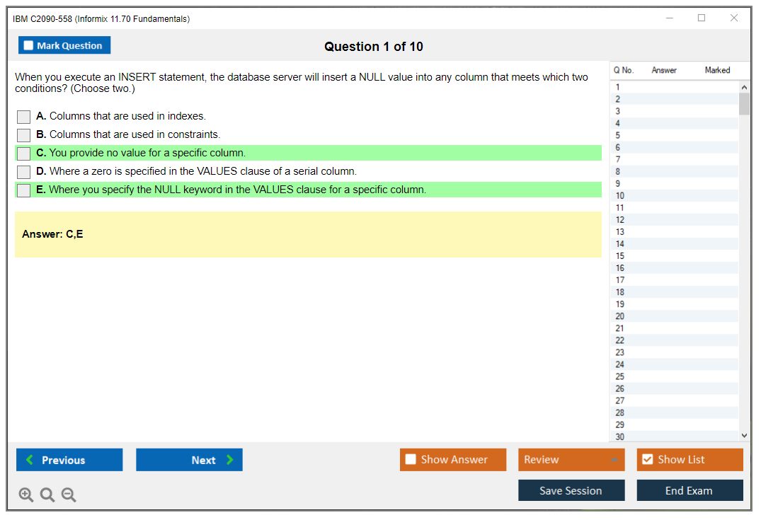The IBM C2090-558 Exam is an entry-level certification exam that validates the candidate's understanding of the basic concepts and functionalities of the IBM Informix 11.70 database system.