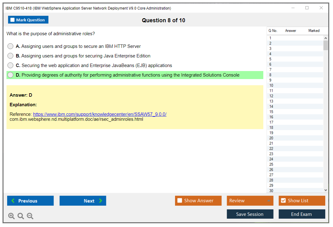 The IBM C9510-418 exam, also known as IBM WebSphere Application Server Network Deployment V9.0 Core Administration, is designed to validate the skills and knowledge necessary to administer and manage IBM WebSphere Application Server Network Deployment V9.0 environments.