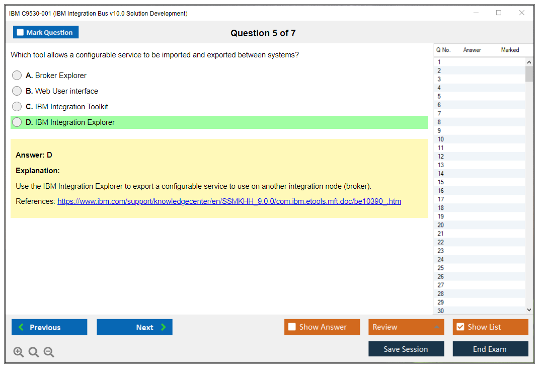 The IBM C9530-001 (IBM Integration Bus v10.0 Solution Development) exam is designed to validate the skills and knowledge of professionals in developing, deploying, and supporting message flow applications using IBM Integration Bus v10.0.