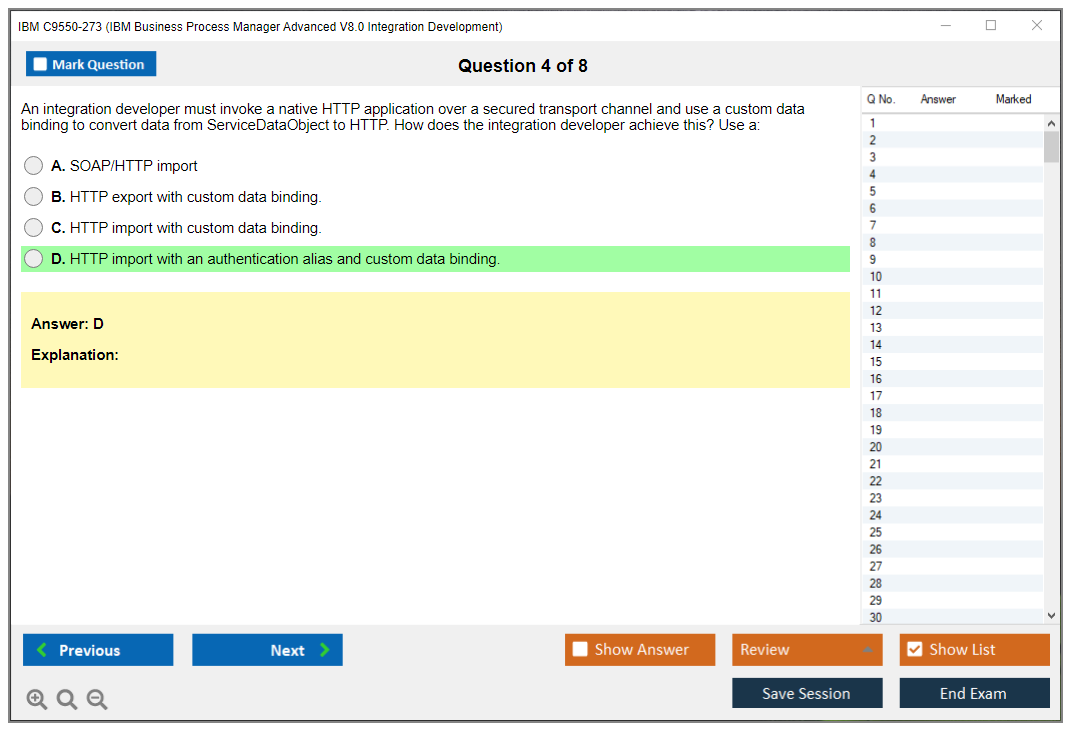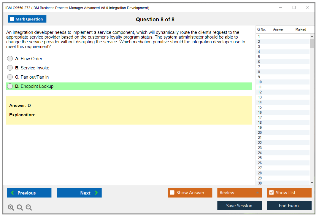 The IBM C9550-273 exam, also known as the IBM Business Process Manager Advanced V8.0 Integration Development exam, is designed to assess a candidate's knowledge and skills in developing integration solutions using IBM Business Process Manager Advanced V8.0.