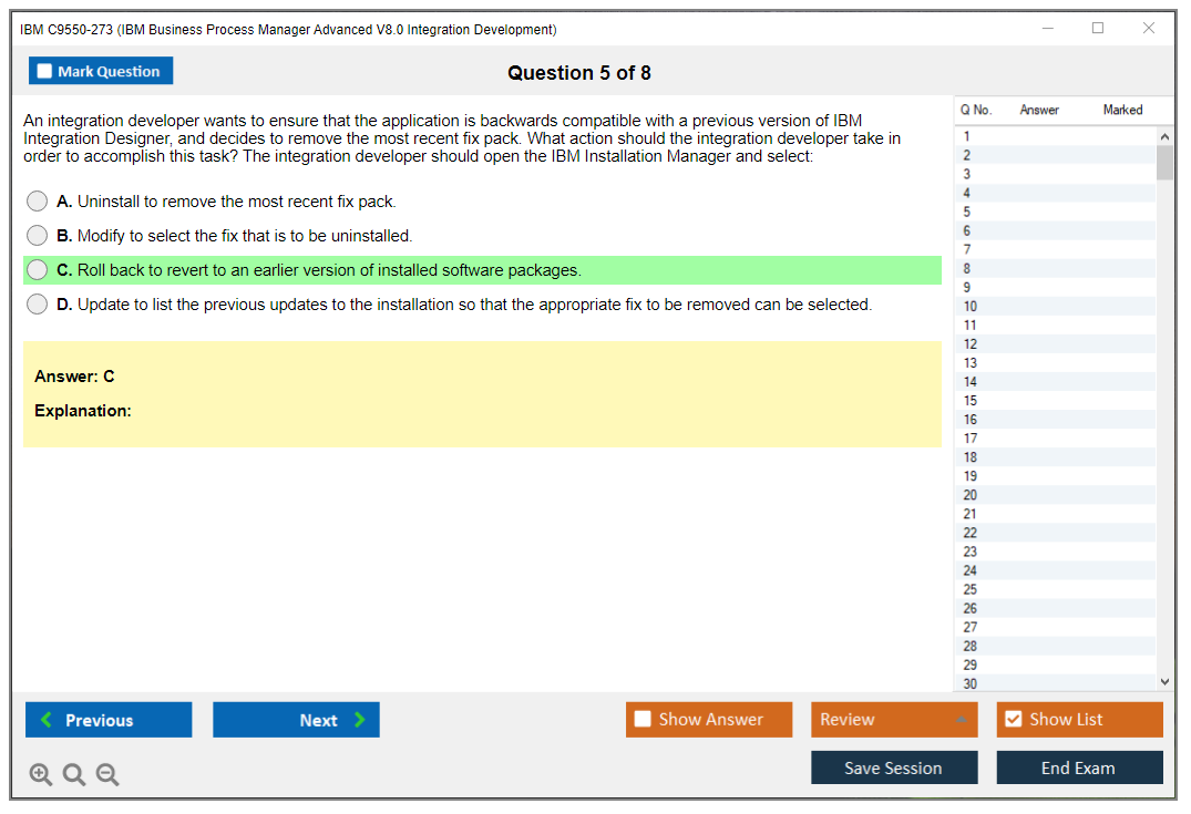 Note: IBM C9550-273 (IBM Business Process Manager Advanced V8.0 Integration Development) will not receive any new updates.