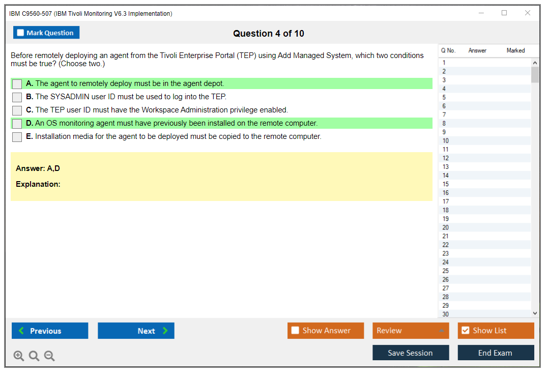 The IBM C9560-507 Exam is a certification test that assesses a candidate's ability to implement and manage IBM Tivoli Monitoring V6.3. It is intended for IT professionals who work with IBM Tivoli Monitoring solutions.