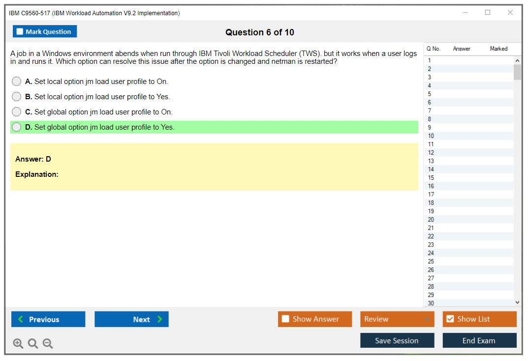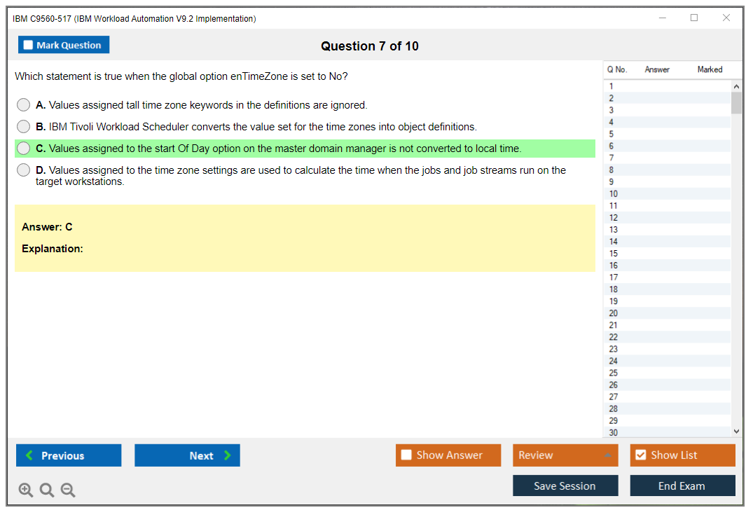The IBM C9560-517 (IBM Workload Automation V9.2 Implementation) exam is designed to validate the skills and knowledge of IT professionals in implementing and managing IBM Workload Automation V9.2 solutions.