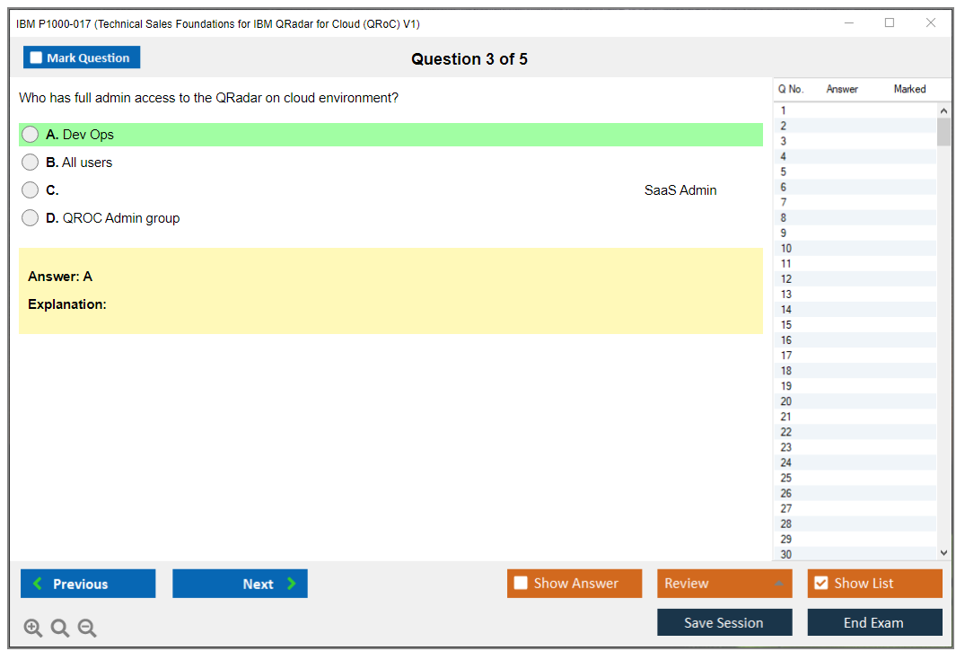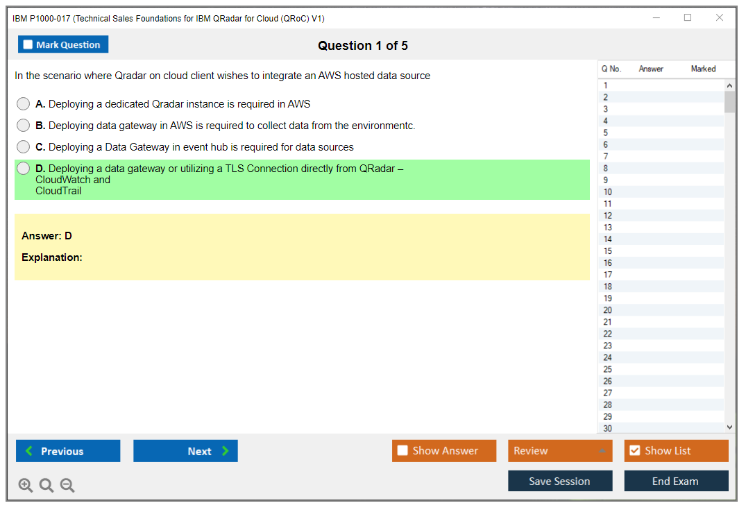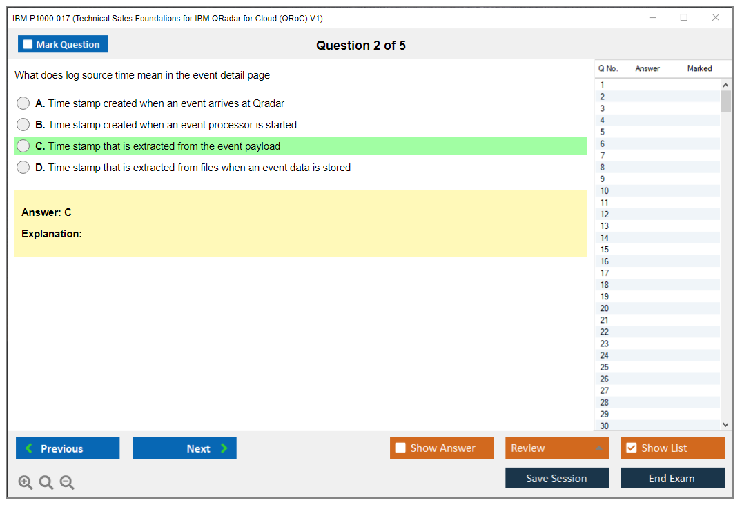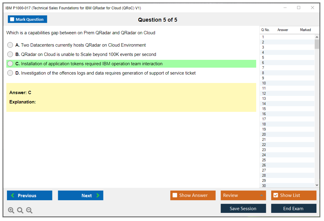 Note: IBM P1000-017 (Technical Sales Foundations for IBM QRadar for Cloud (QRoC) V1) will not receive any new updates.