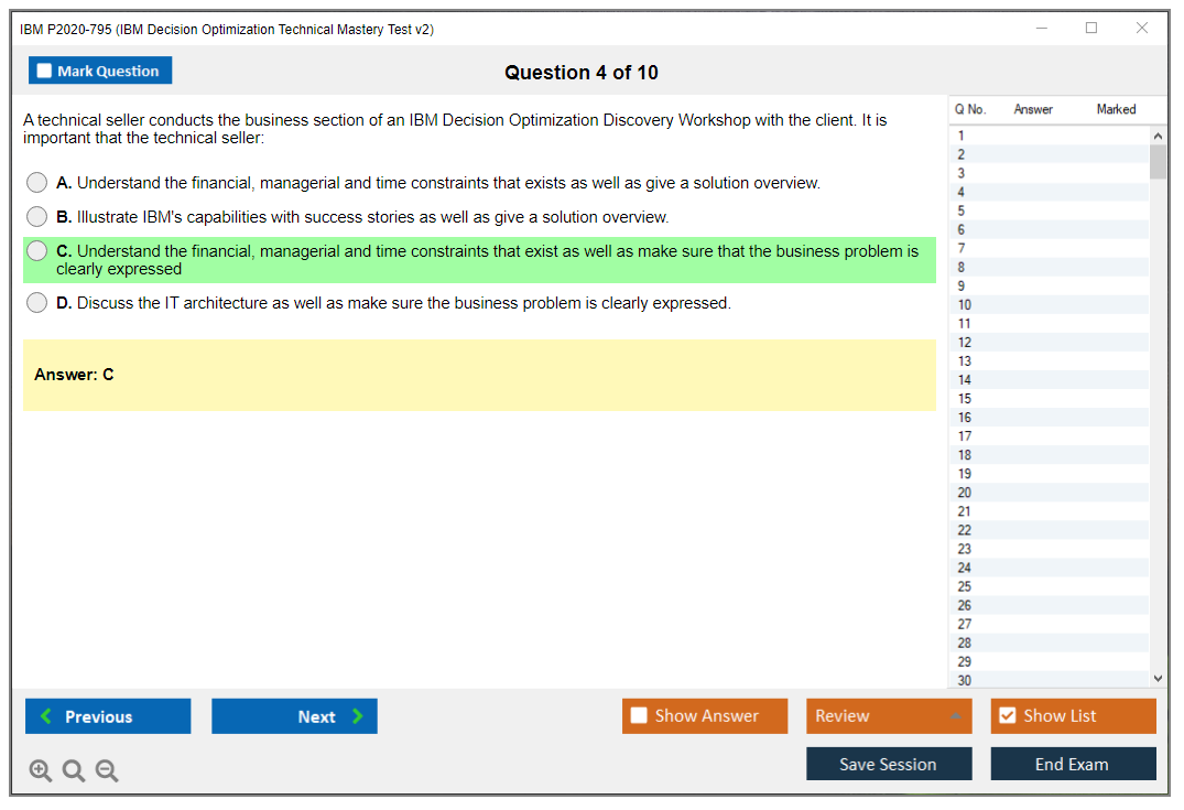 Note: IBM P2020-795 (IBM Decision Optimization Technical Mastery Test v2) will not receive any new updates.