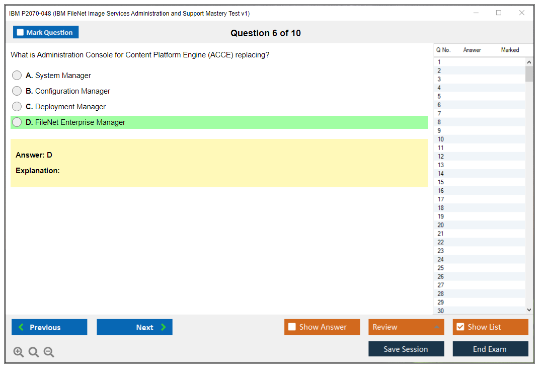 The IBM P2070-048 (IBM FileNet Image Services Administration and Support Mastery Test v1) is designed to assess the knowledge and skills of individuals in administering and supporting IBM FileNet Image Services.