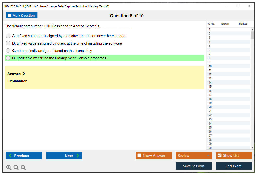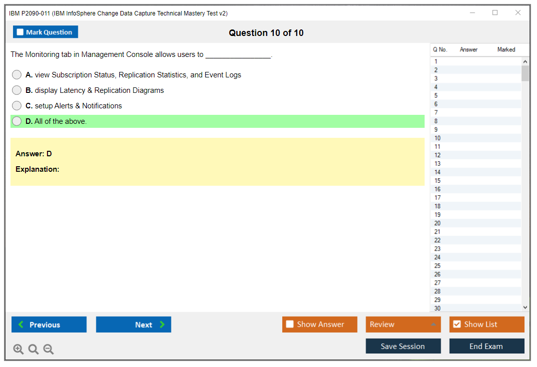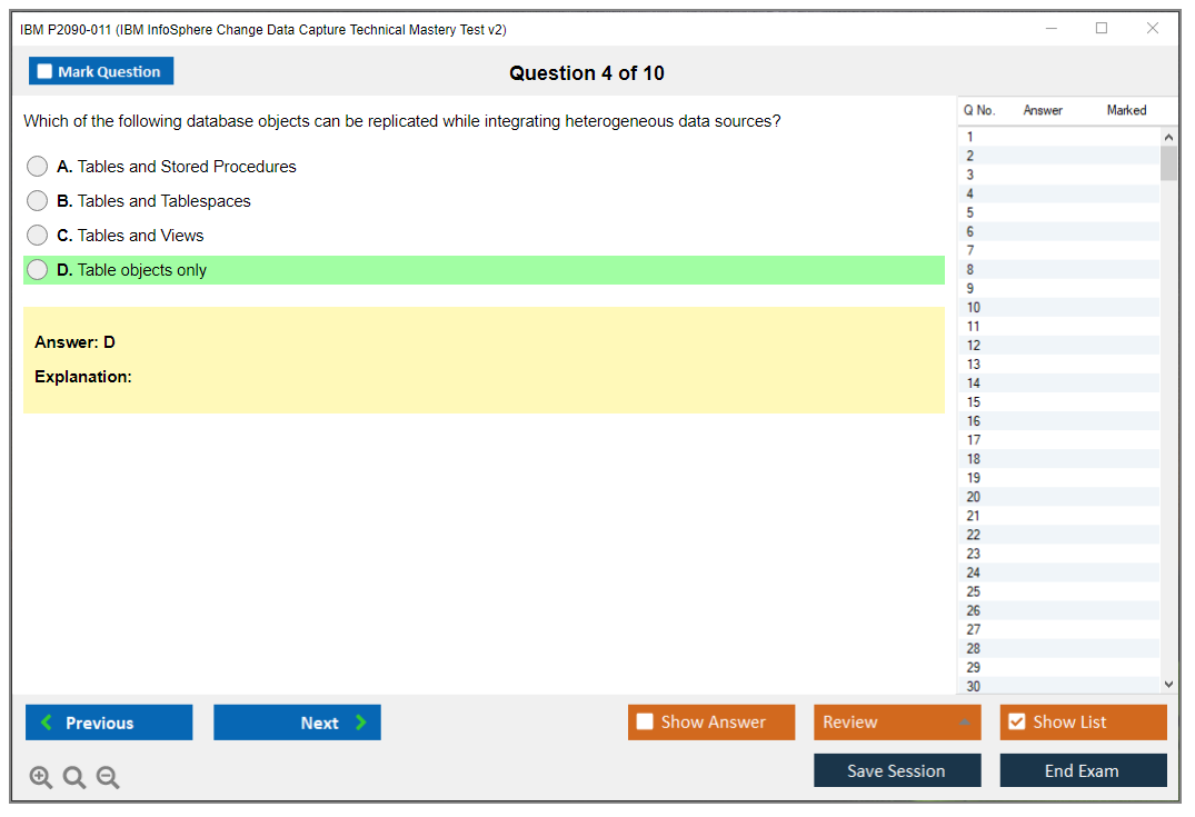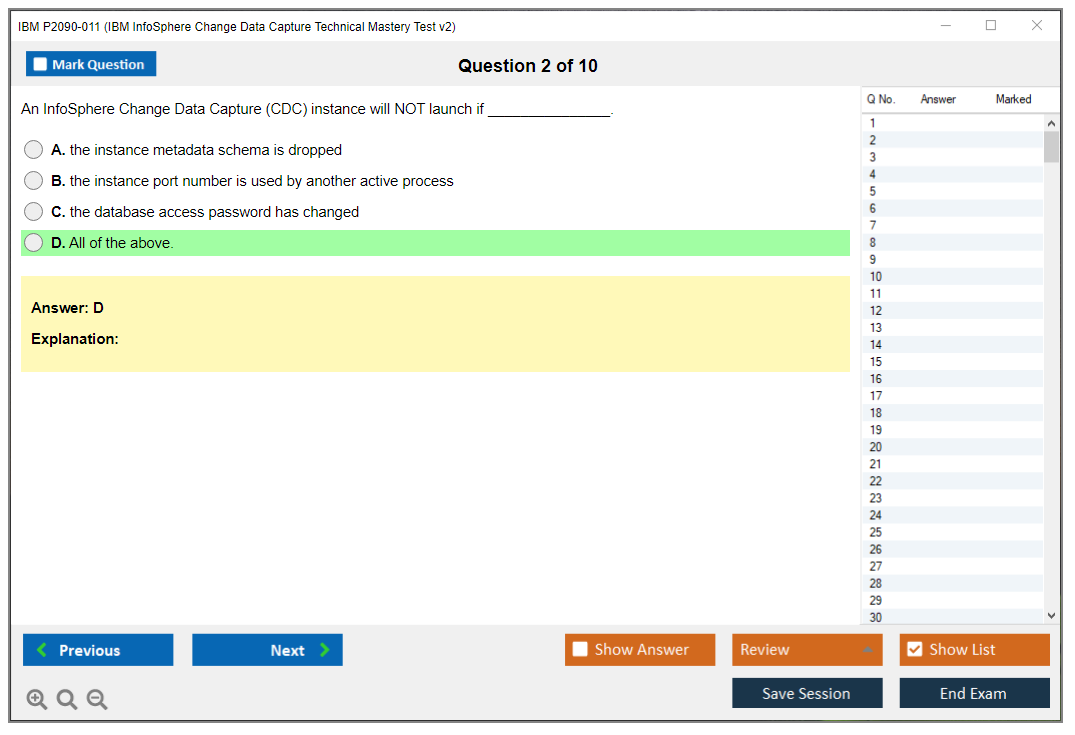 Note: IBM P2090-011 (IBM InfoSphere Change Data Capture Technical Mastery Test v2) will not receive any new updates.