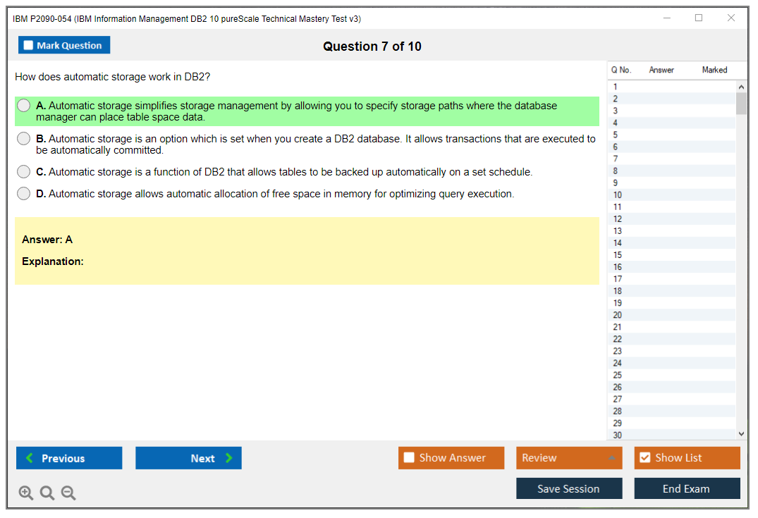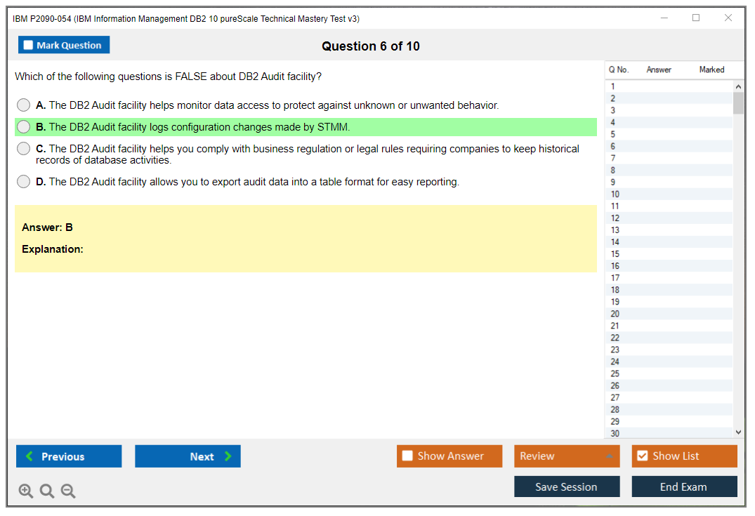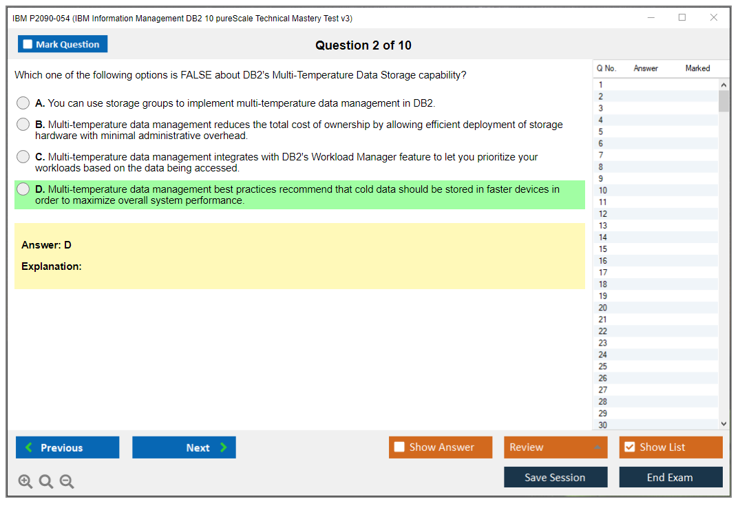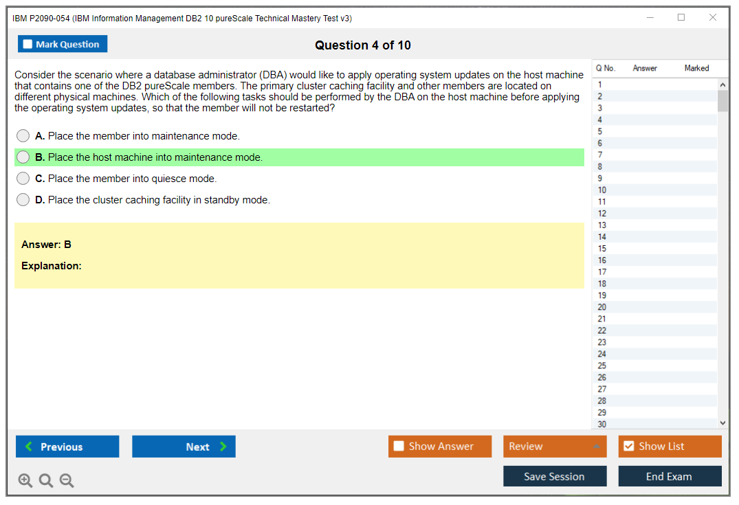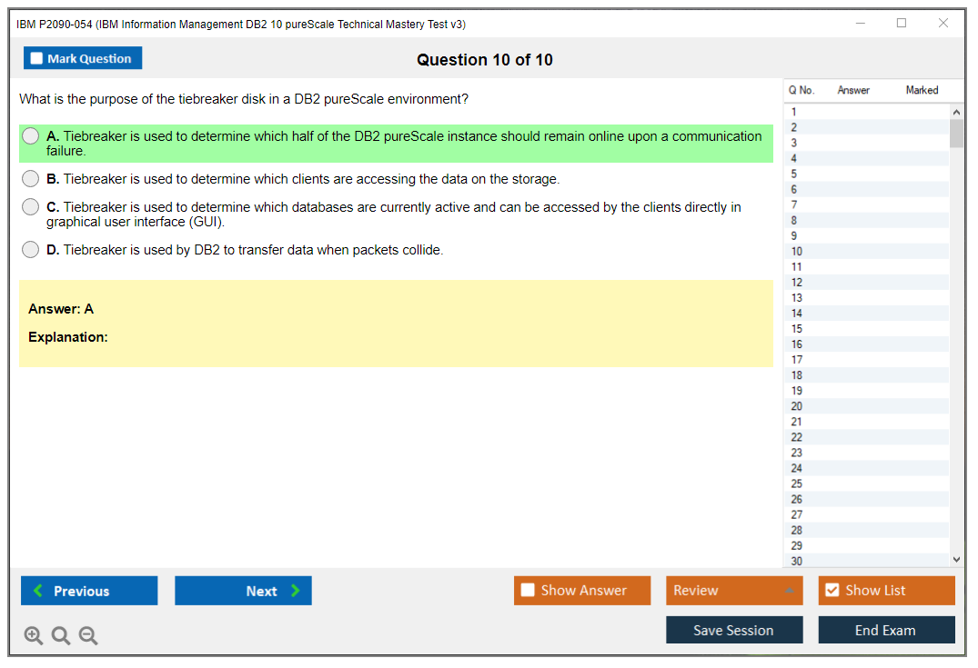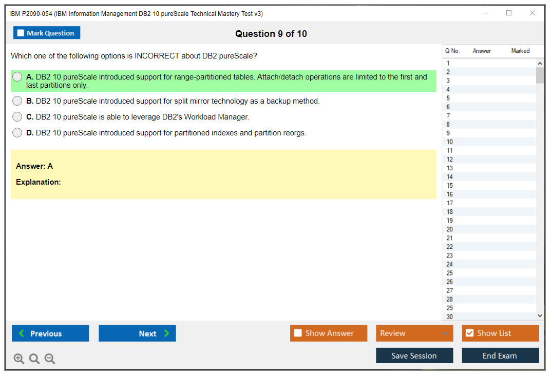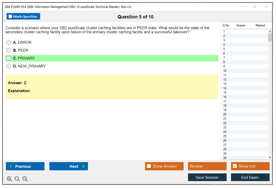 The IBM P2090-054 (IBM Information Management DB2 10 pureScale Technical Mastery Test v3) Exam is designed to validate the skills and knowledge of individuals in managing and implementing IBM DB2 10 pureScale environments. This exam tests the candidate's ability to understand and utilize the features and functionalities of IBM DB2 10 pureScale.
