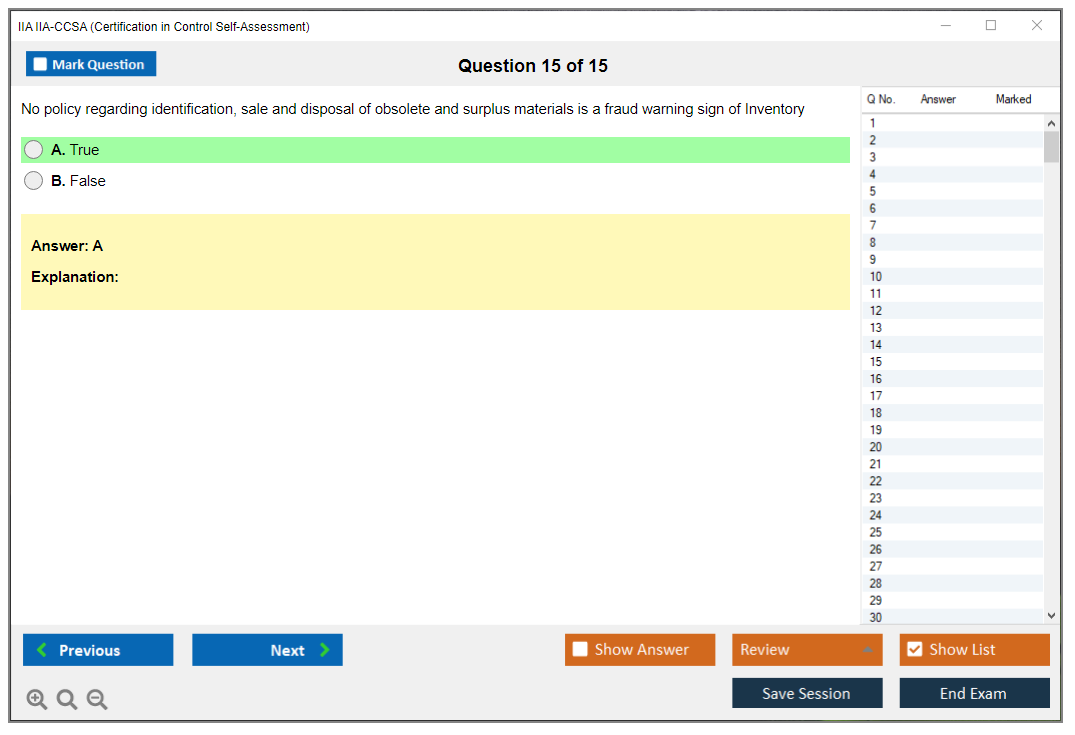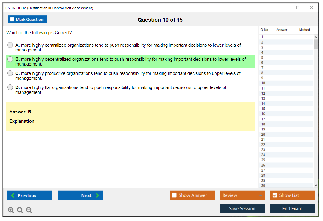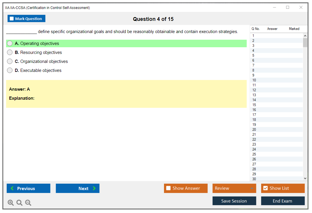 The IIA IIA-CCSA exam is a certification exam offered by the Institute of Internal Auditors (IIA) to validate the expertise of professionals in control self-assessment. It focuses on the principles and practices of self-assessment, risk management, and control processes.