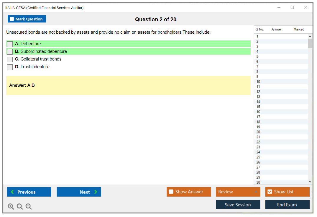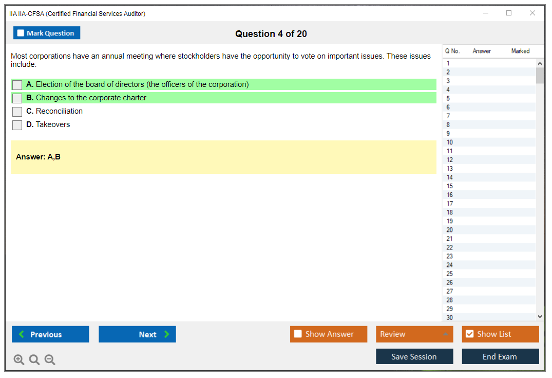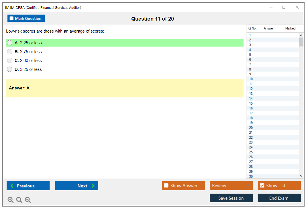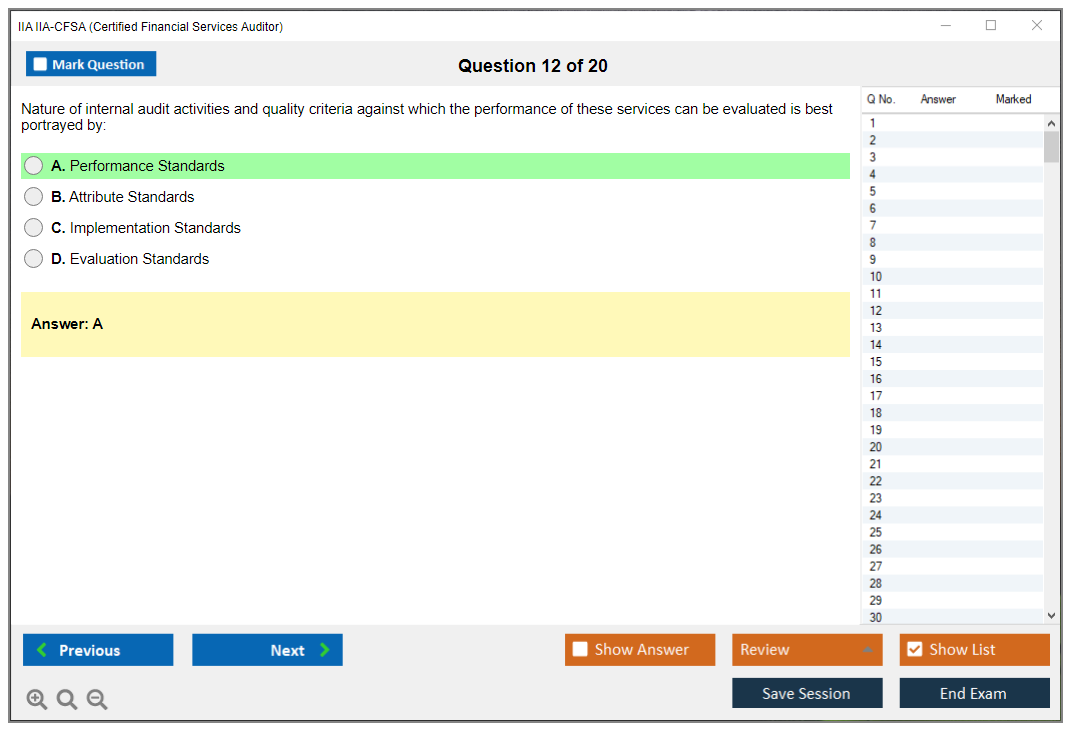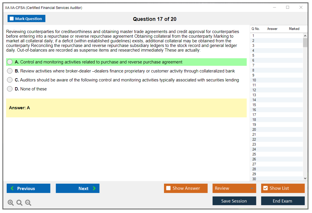 The IIA IIA-CFSA (Certified Financial Services Auditor) Exam is a professional certification exam offered by The Institute of Internal Auditors (IIA). It is designed for auditors who specialize in financial services, including banking, insurance, and securities.