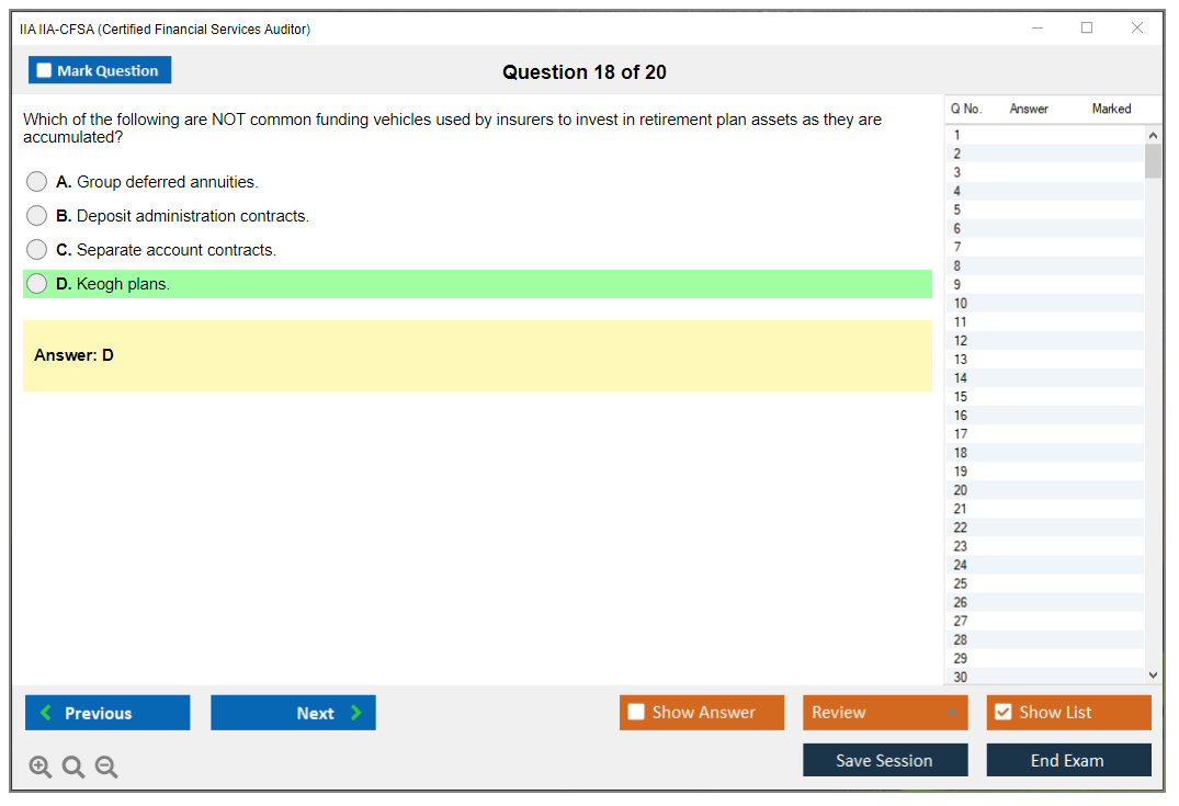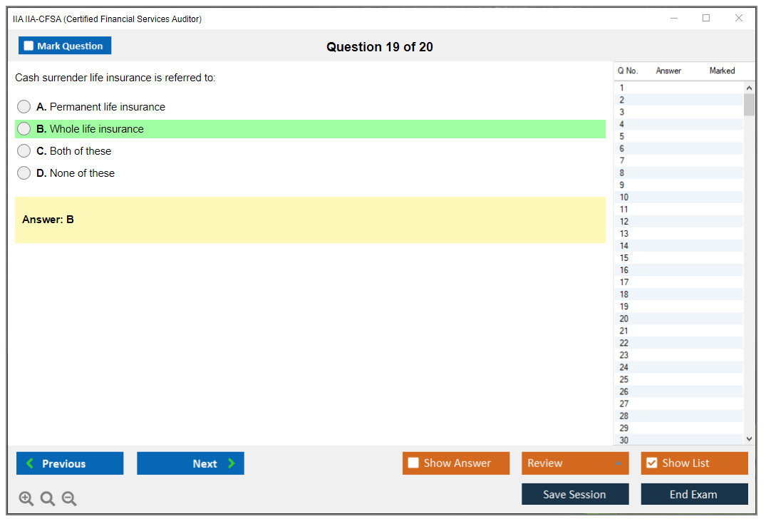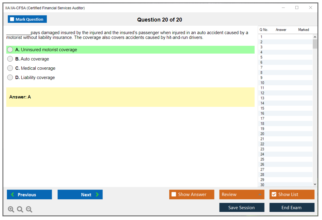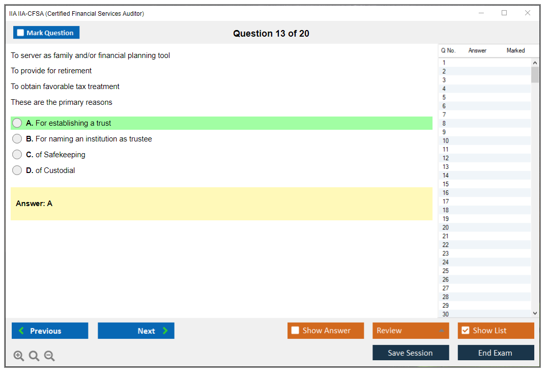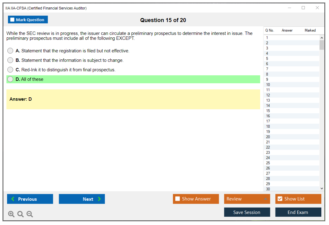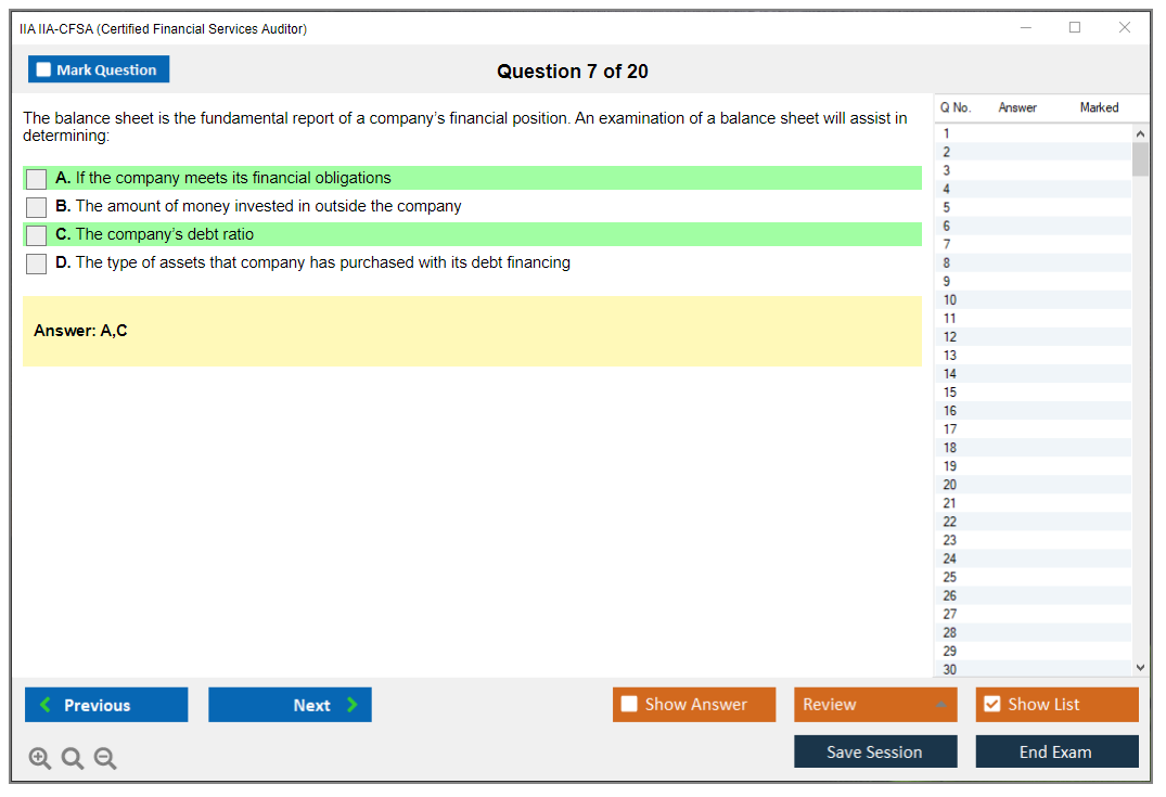 The IIA IIA-CFSA (Certified Financial Services Auditor) Exam is a professional certification exam offered by The Institute of Internal Auditors (IIA). It is designed for auditors who specialize in financial services, including banking, insurance, and securities.
