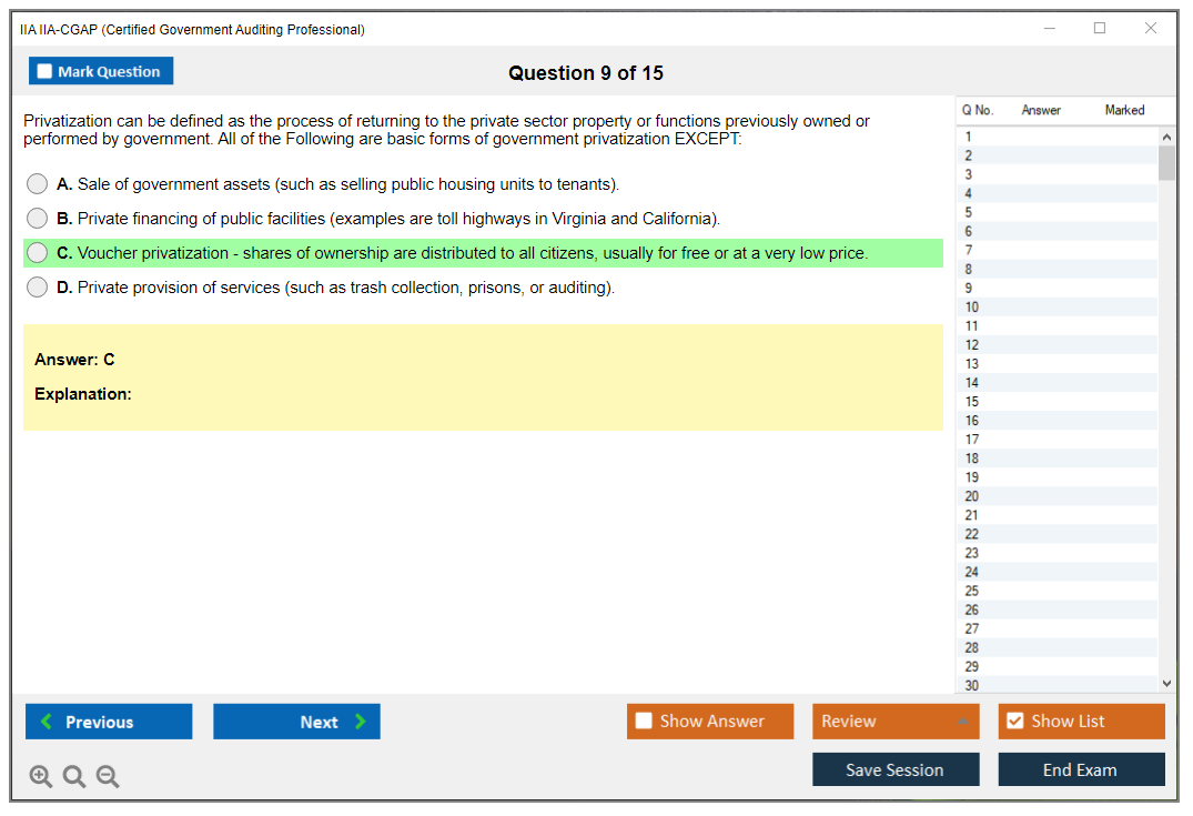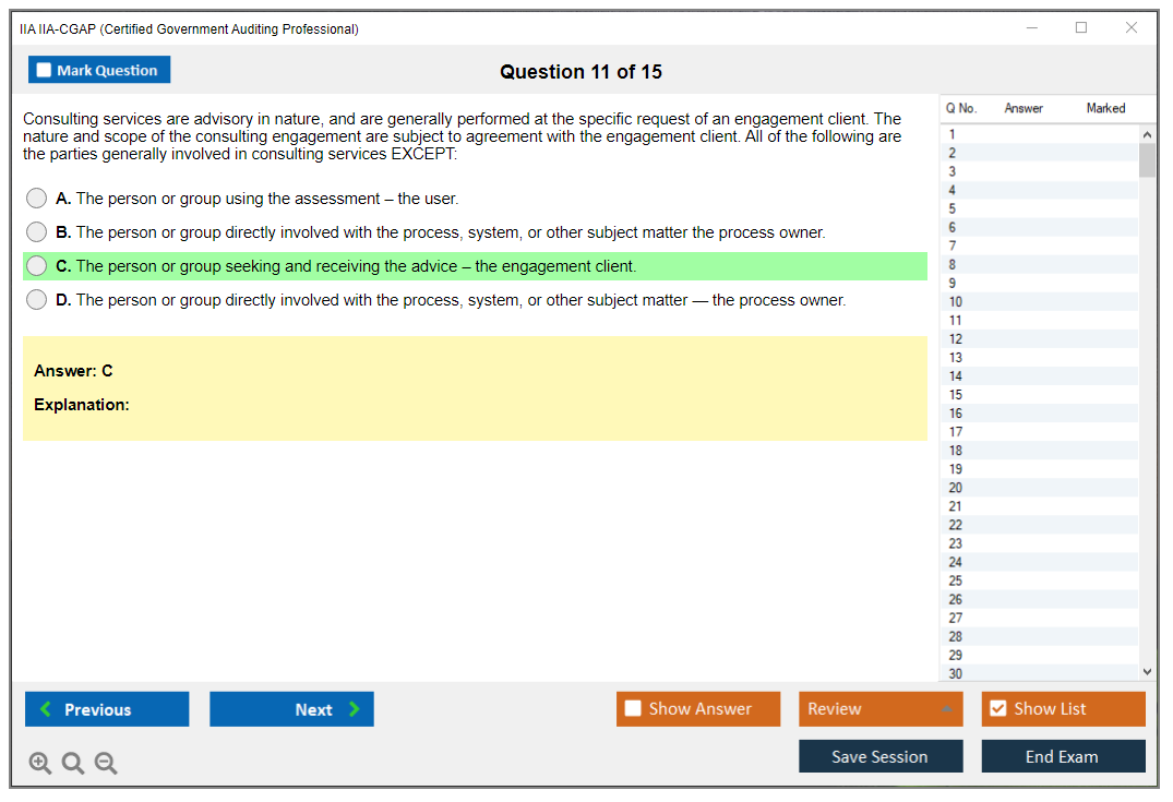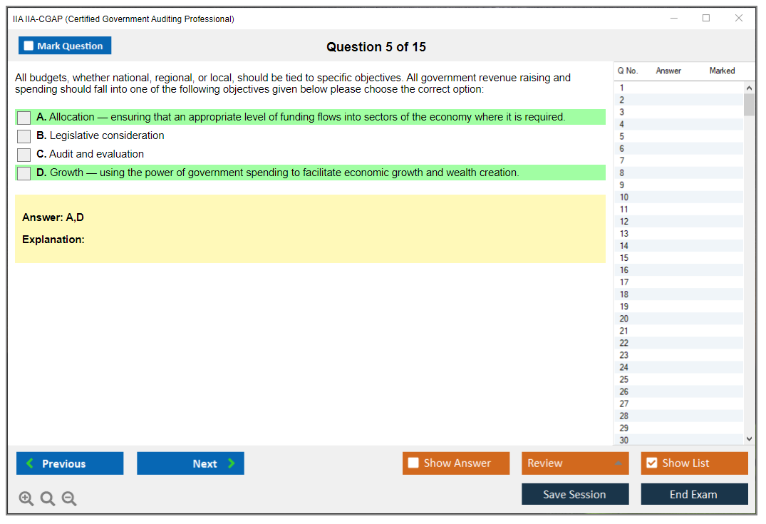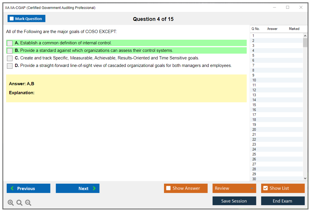 The IIA IIA-CGAP Exam is a specialized certification exam designed to assess the knowledge and skills of auditors working in the public sector. It covers various aspects of government auditing, including standards, principles, and practices.