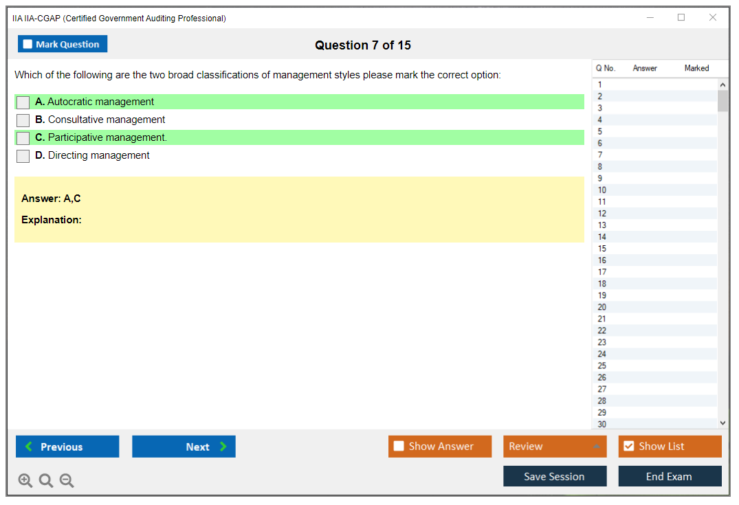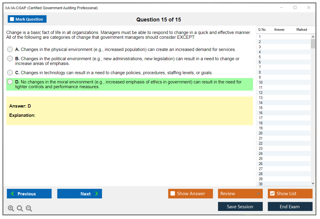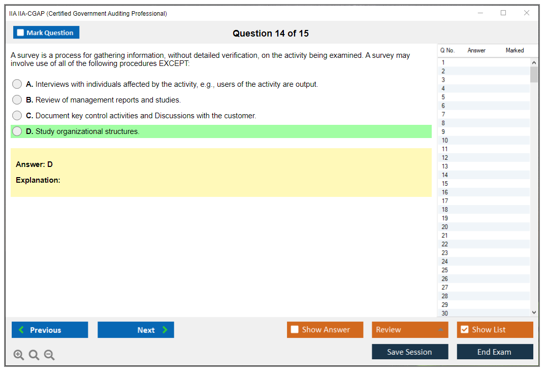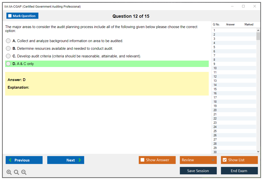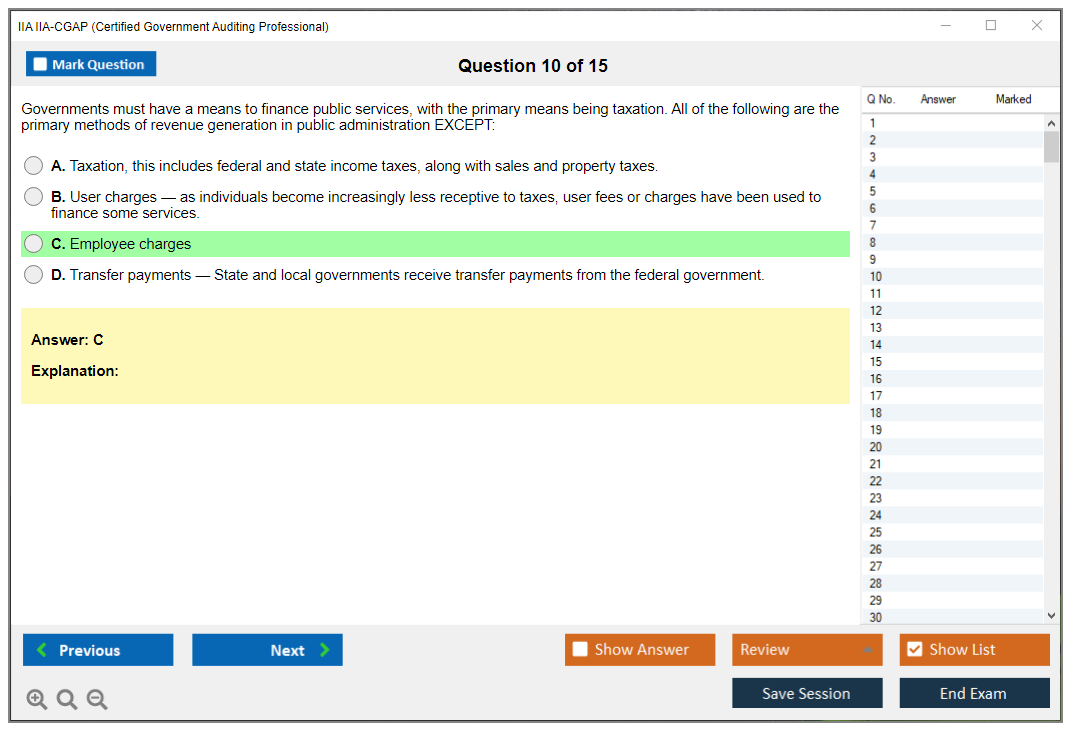 The IIA IIA-CGAP Exam is a specialized certification exam designed to assess the knowledge and skills of auditors working in the public sector. It covers various aspects of government auditing, including standards, principles, and practices.