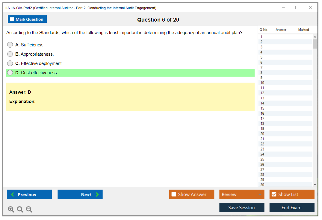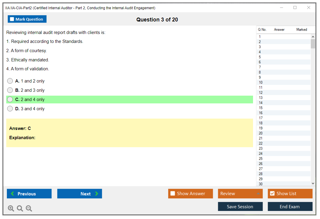 The IIA IIA-CIA-Part2 exam consists of 100 multiple-choice questions.