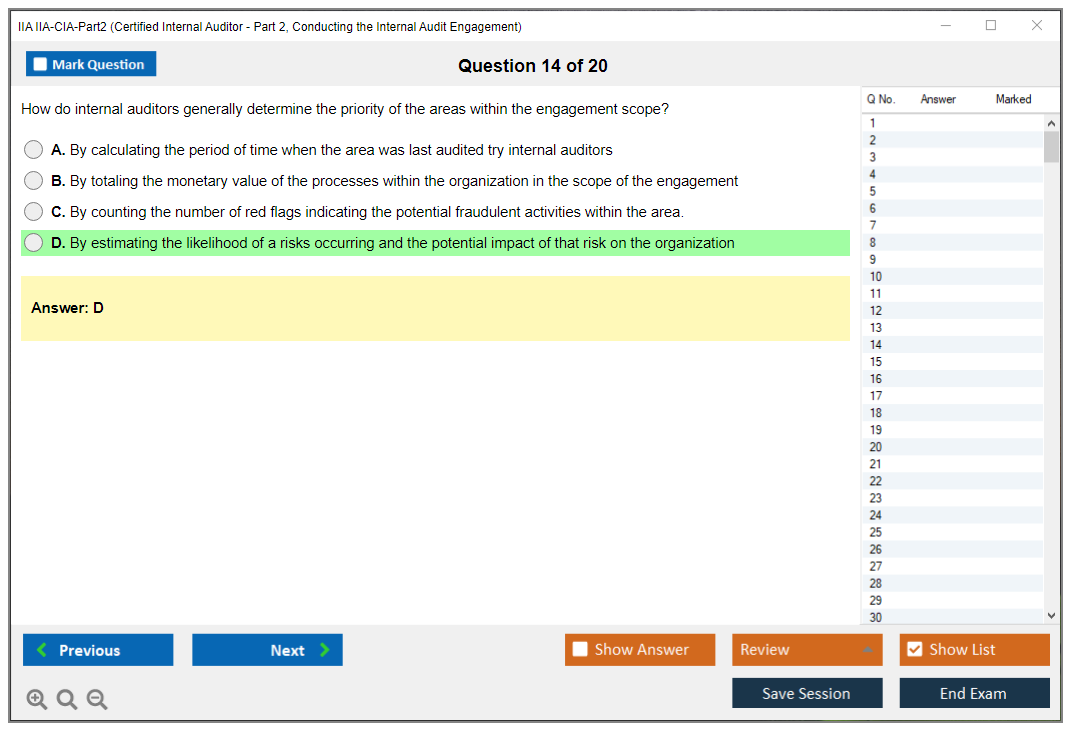 The IIA IIA-CIA-Part2 (Practice of Internal Auditing) exam is designed to test a candidate's knowledge and skills in conducting internal audits. It focuses on internal audit functions, including managing the internal audit activity, planning the engagement, performing the engagement, and communicating engagement results.