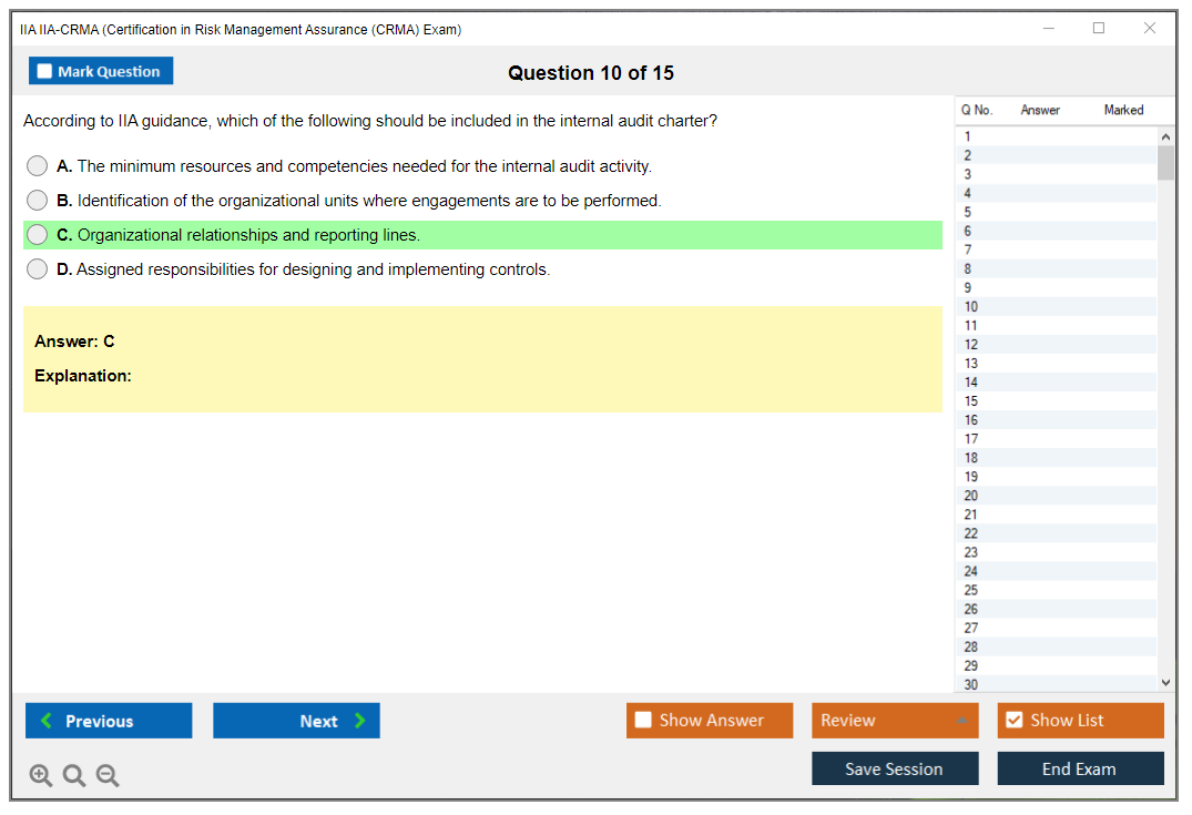 The IIA IIA-CRMA (Certification in Risk Management Assurance) Exam is a professional credential offered by The Institute of Internal Auditors (IIA) that focuses on risk management assurance, governance, and quality assurance.