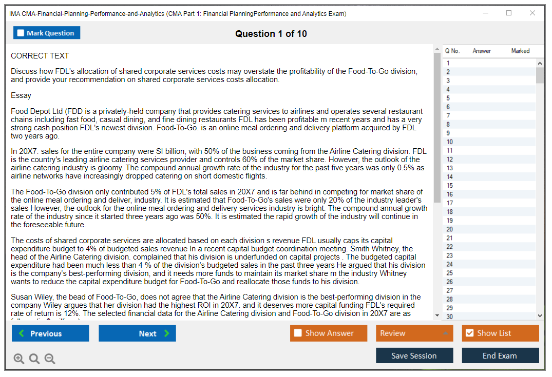 The question format of the IMA CMA-Financial-Planning-Performance-and-Analytics Exam includes multiple-choice questions and essay questions.