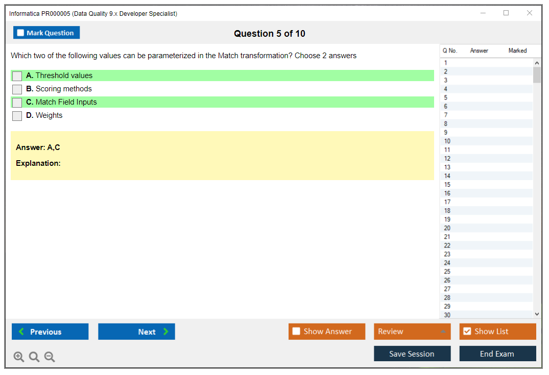 The question format of the Informatica PR000005 Exam includes multiple-choice and multiple-response questions.