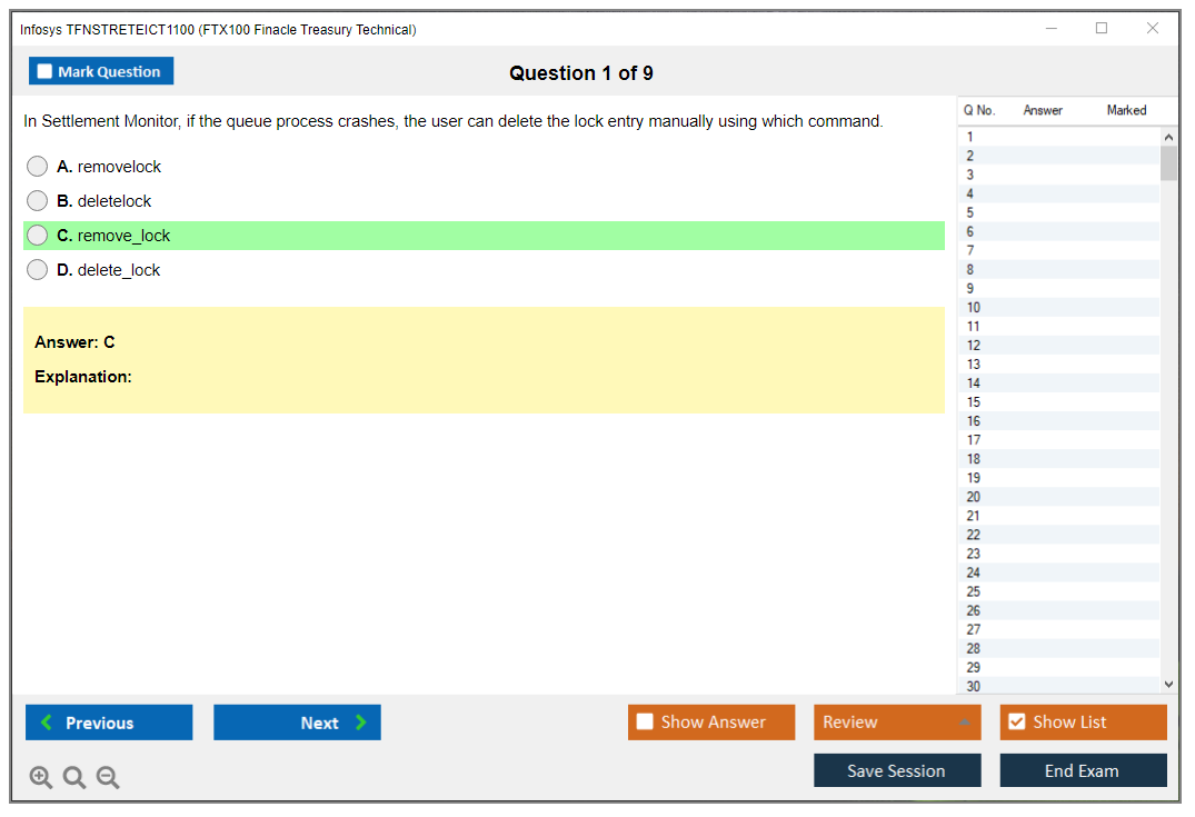 The Infosys TFNSTRETEICT1100 (FTX100 Finacle Treasury Technical) Exam is designed to assess the technical knowledge and skills of individuals in using the Finacle Treasury solution. It covers various aspects such as system architecture, setup, configuration, and troubleshooting.