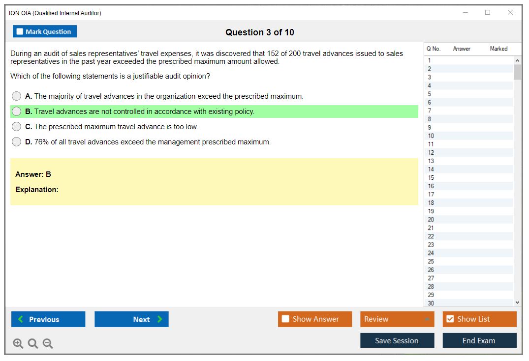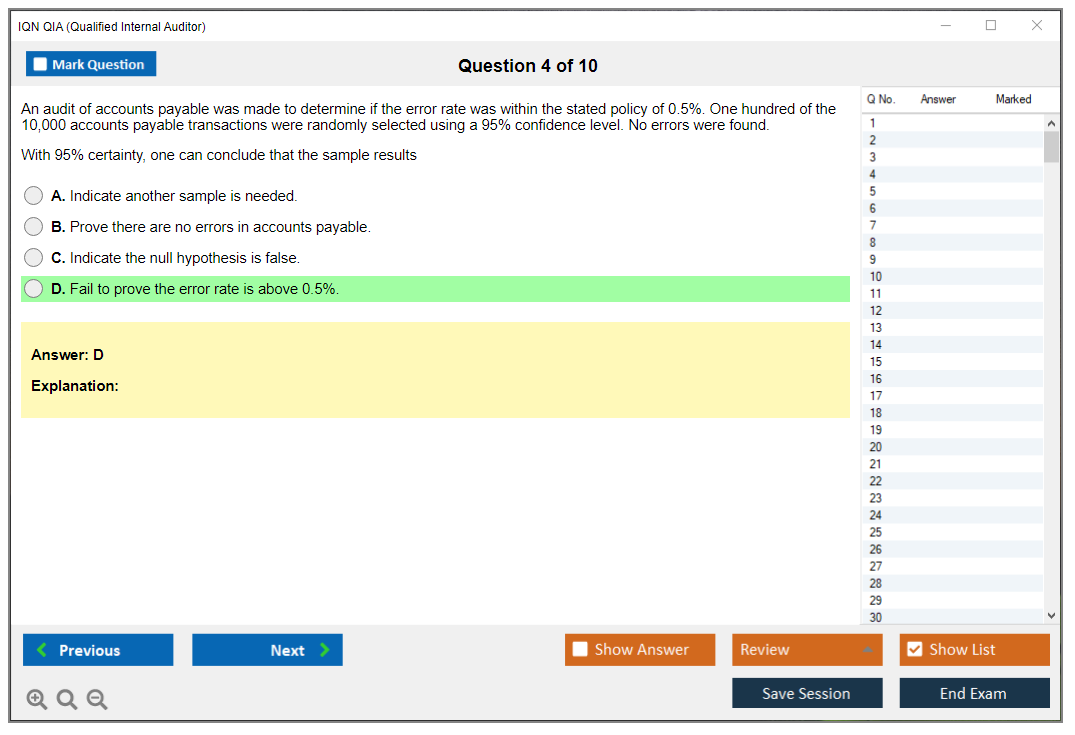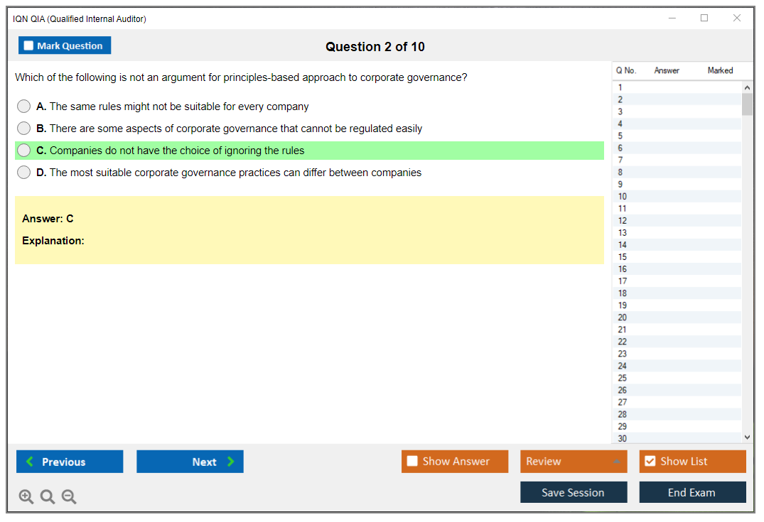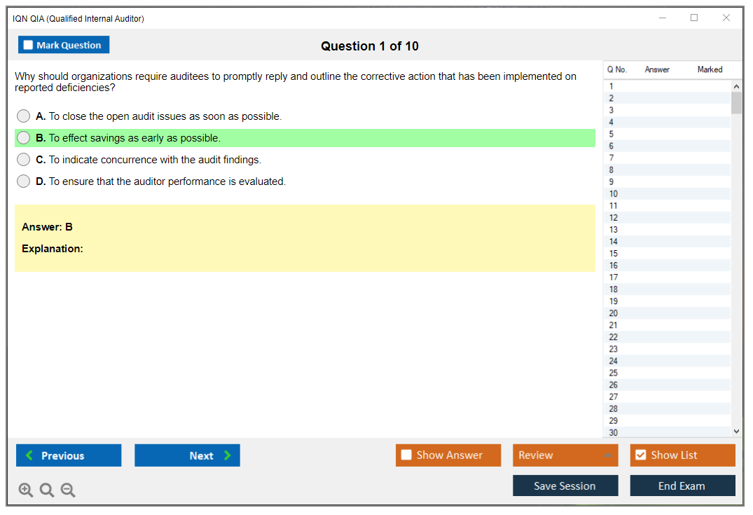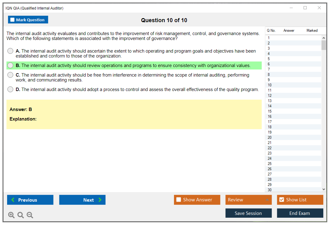 The IQN QIA (Qualified Internal Auditor) Exam is a certification designed to validate the knowledge and skills of internal auditors. It is offered by the International Qualifications Network (IQN) and aims to assess the competencies required to perform internal audits effectively.