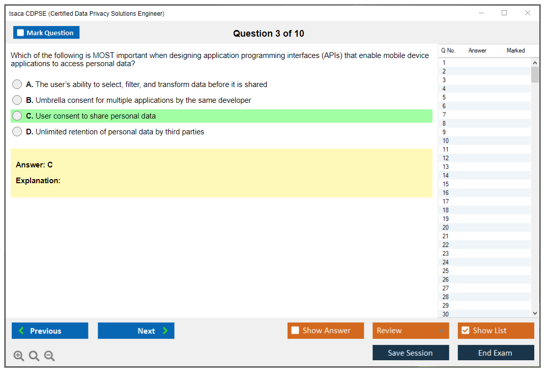 The ISACA Certified Data Privacy Solutions Engineer (CDPSE) exam is a certification designed for professionals who are responsible for implementing privacy solutions and managing data privacy. It validates the skills and knowledge required to assess, build, and implement comprehensive privacy solutions.