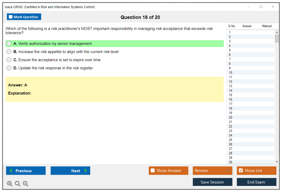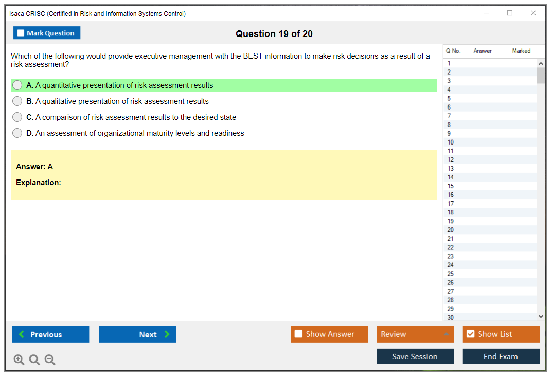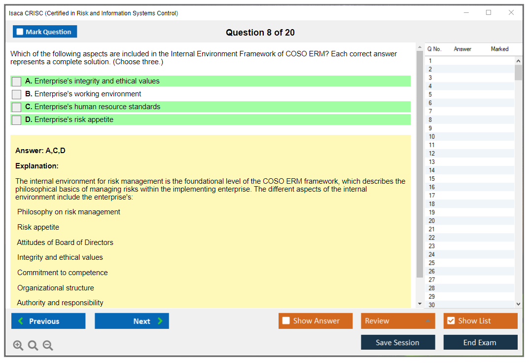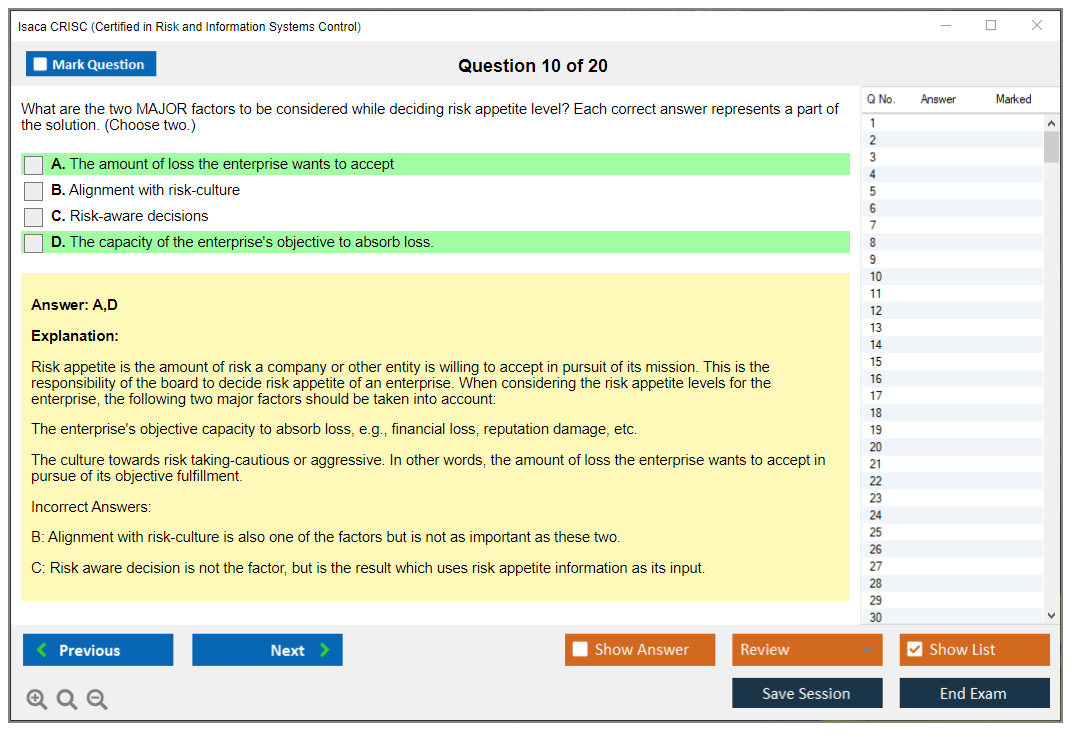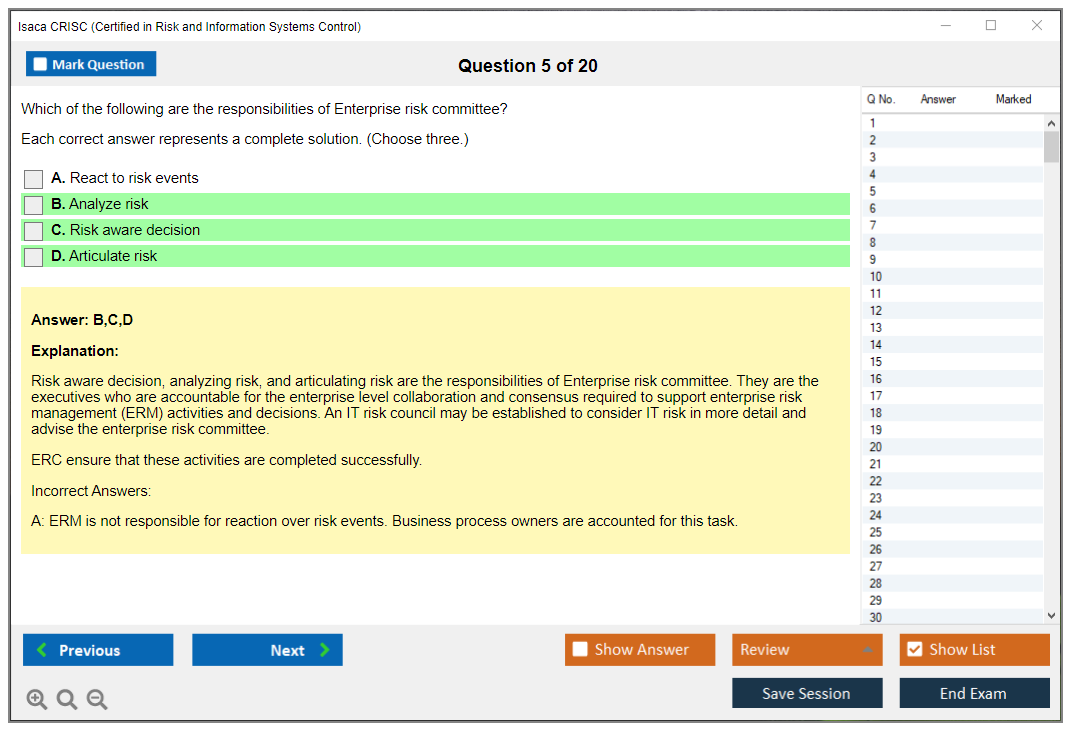 The ISACA CRISC exam is a globally recognized certification that validates the expertise of IT professionals in managing enterprise IT risk and implementing and maintaining information systems controls. The certification is aimed at professionals who are responsible for risk management and control in an enterprise environment.