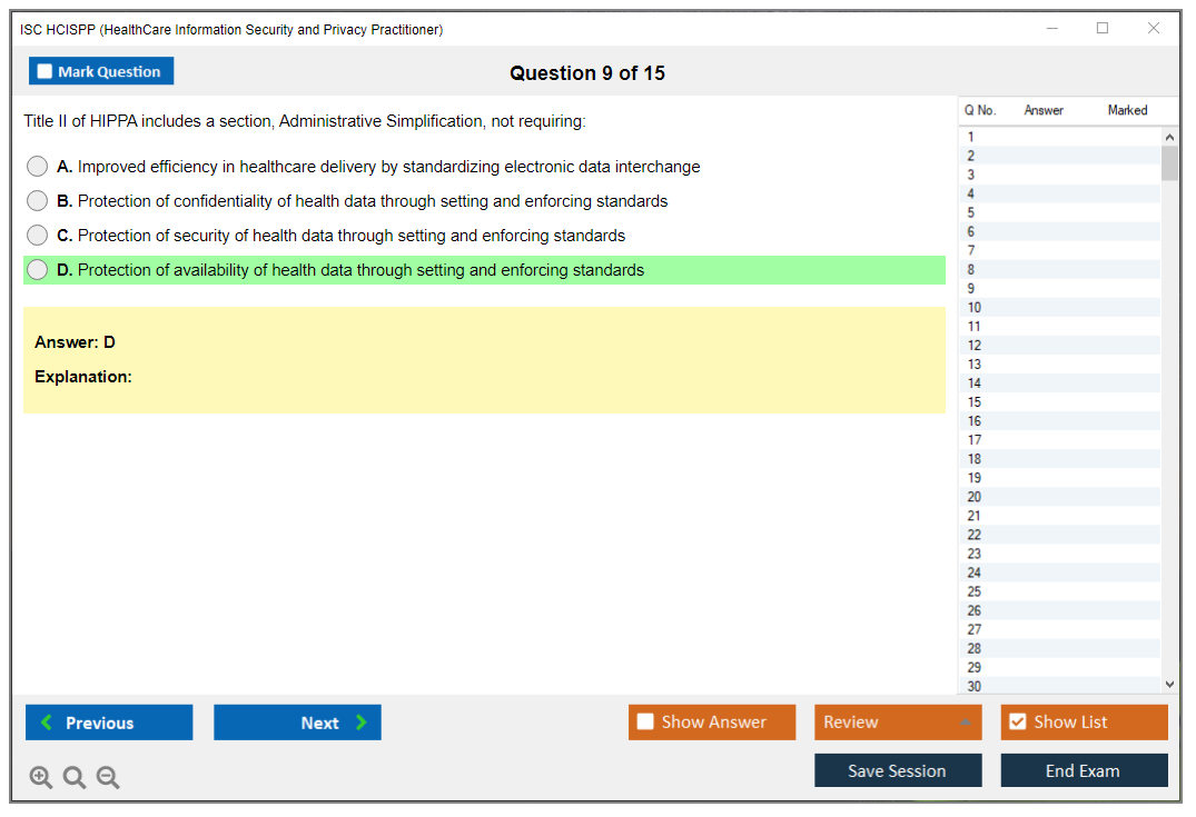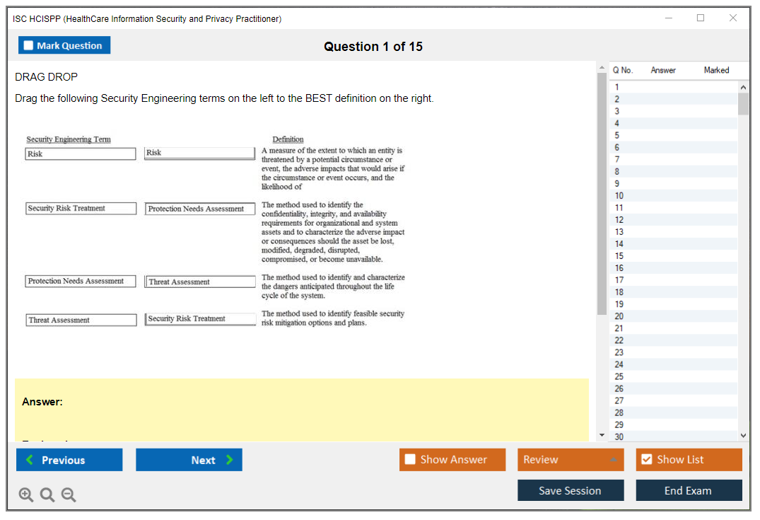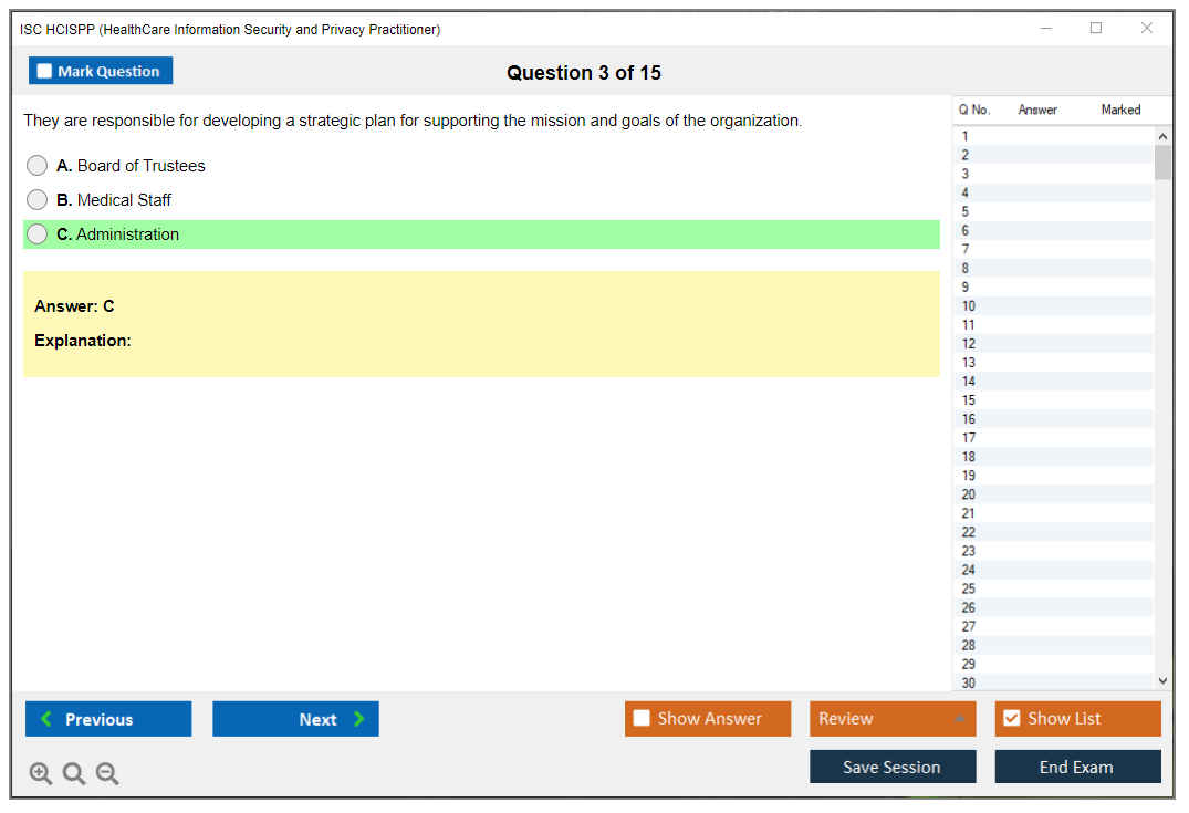 The ISC2 HCISPP Exam consists of multiple-choice questions.