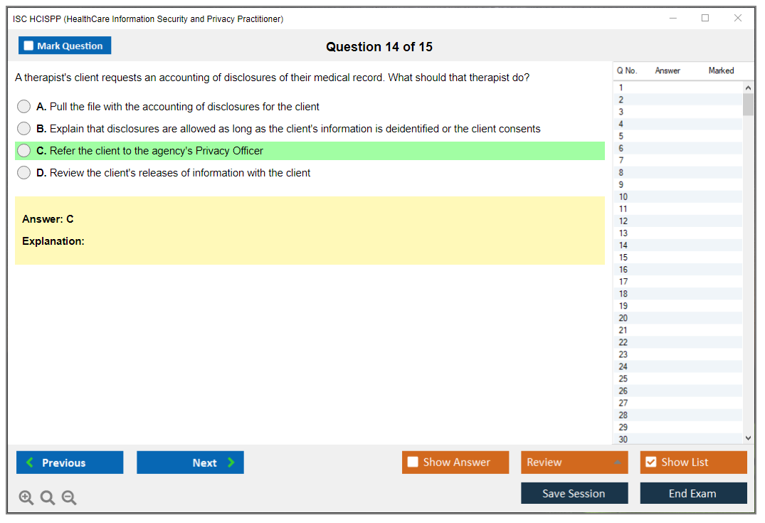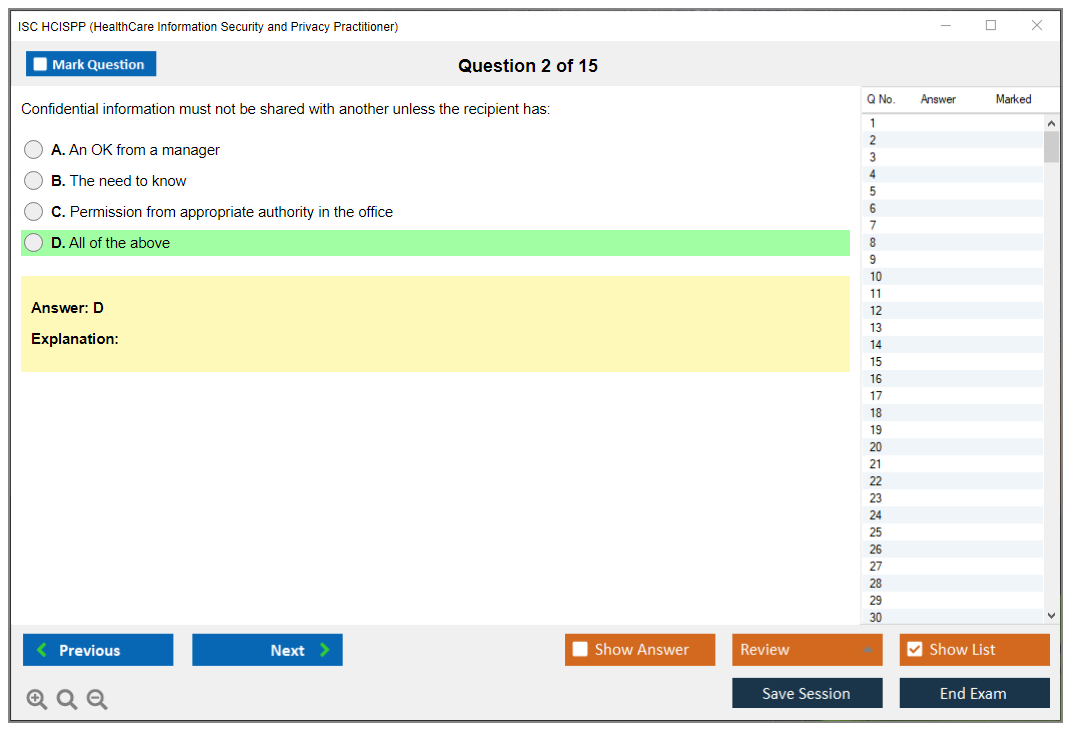 The ISC2 HCISPP (HealthCare Information Security and Privacy Practitioner) Exam is a certification designed for professionals in the healthcare industry who manage and protect sensitive patient information. The certification focuses on the essential knowledge and skills required to implement, manage, and assess the security and privacy controls necessary to protect healthcare information.