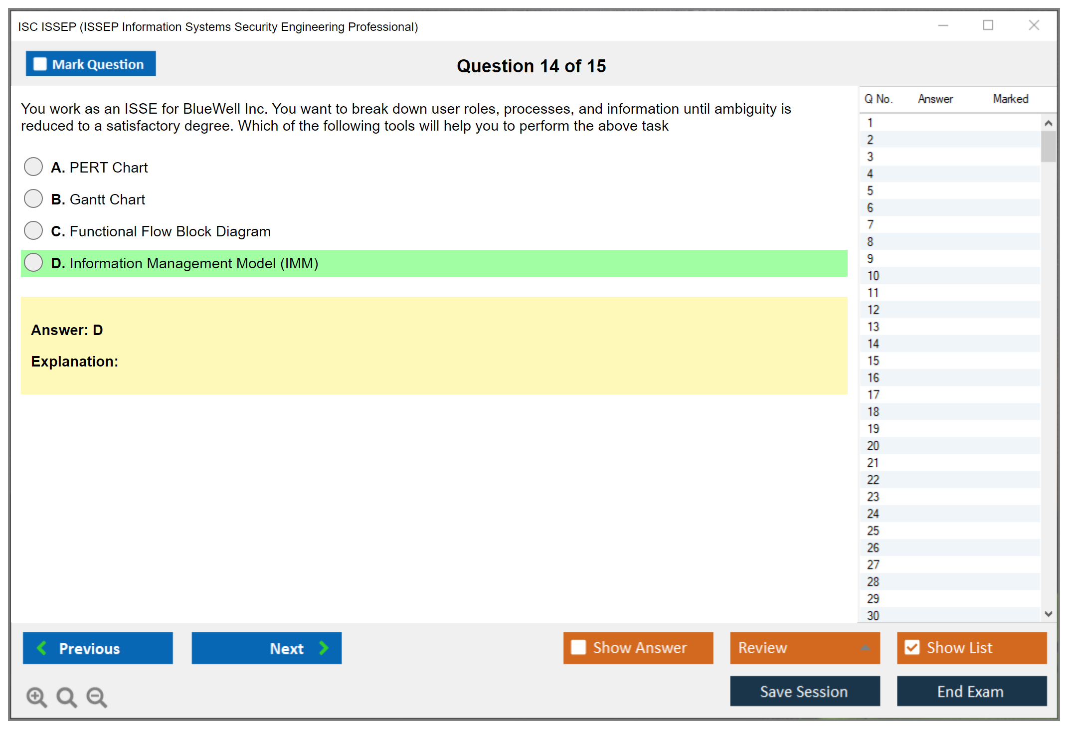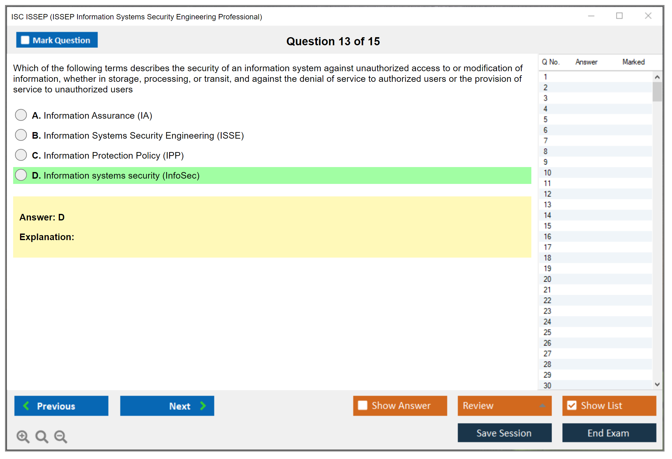 The ISC2 ISSEP exam consists of multiple-choice questions.