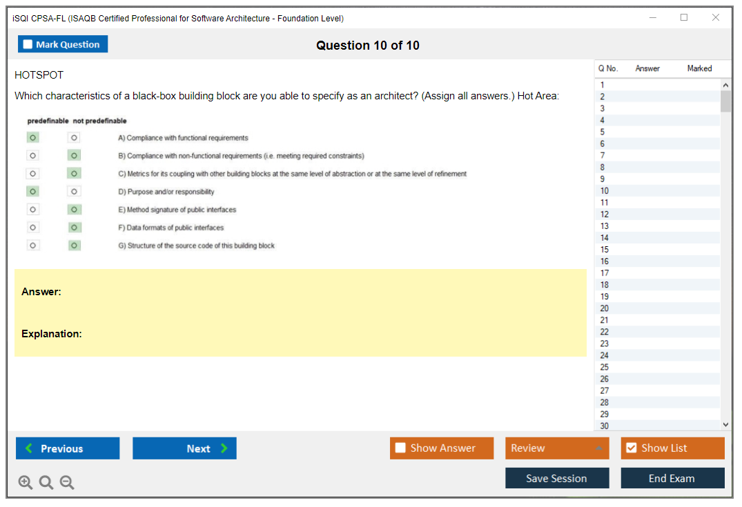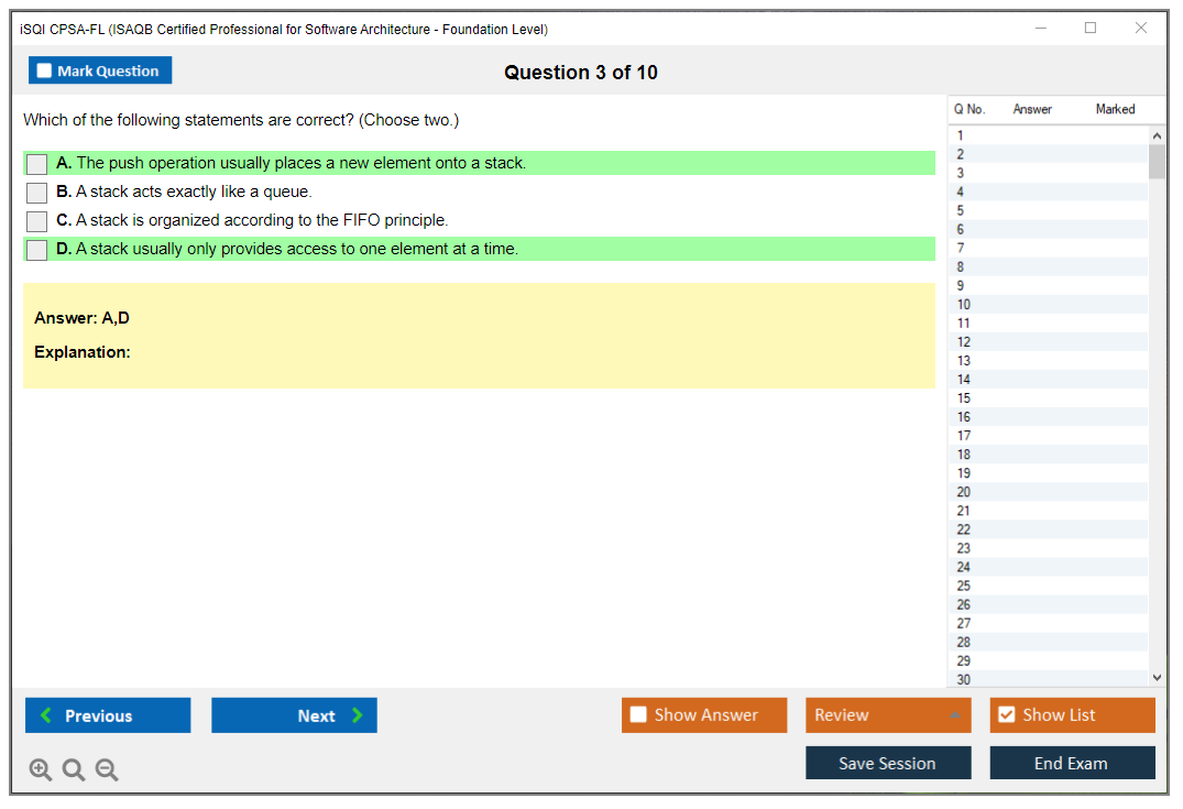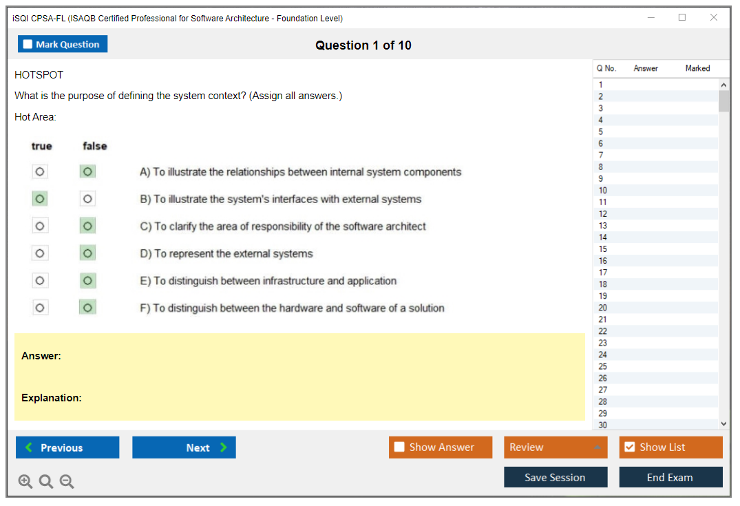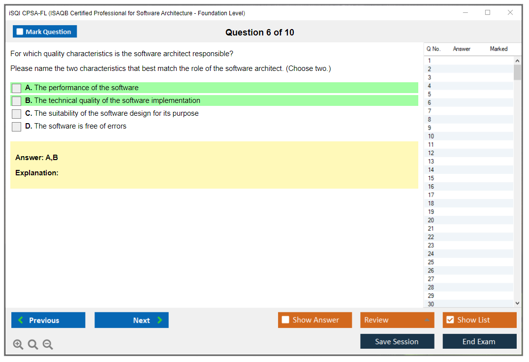 The iSQI CPSA-FL (ISAQB Certified Professional for Software Architecture - Foundation Level) Exam is a certification that validates the foundational knowledge and skills in software architecture. It is designed for individuals who want to demonstrate their understanding of software architecture principles, methodologies, and best practices.