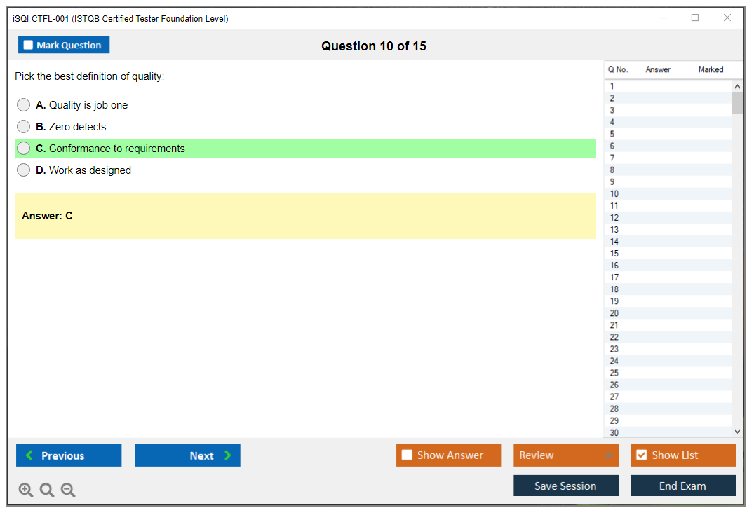 The question format of the iSQI CTFL-001 Exam is multiple-choice.