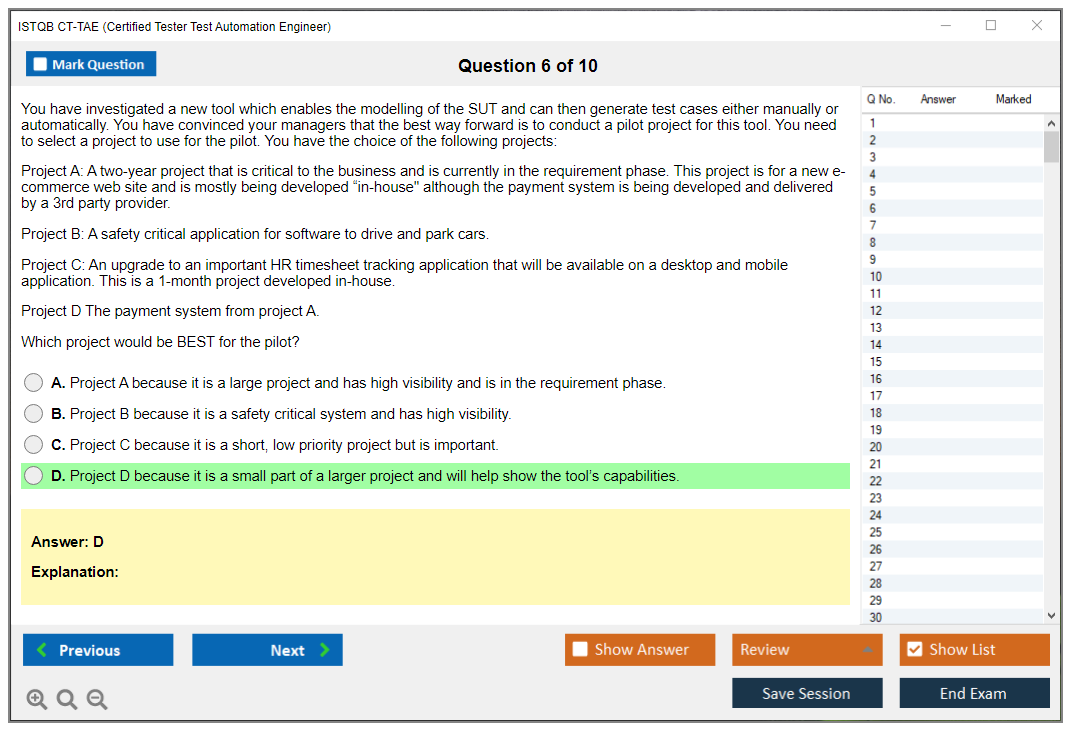 Sample questions for the ISTQB CT-TAE Exam can be found in the official ISTQB CT-TAE syllabus and through various accredited training providers. These sample questions help candidates understand the format and type of questions that will be asked in the exam.
