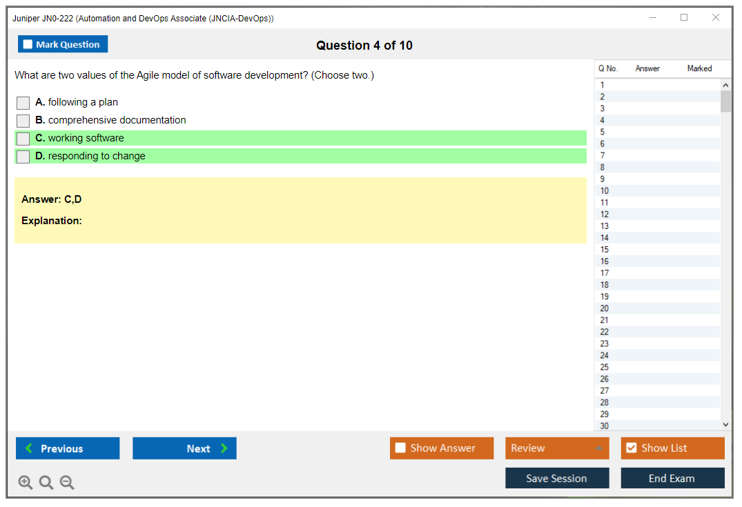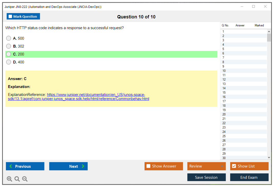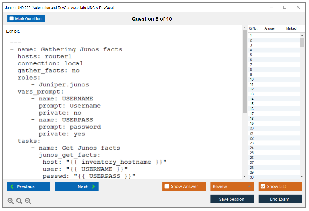 The Juniper JN0-222 exam is part of the Juniper Networks Certified Associate - Automation and DevOps (JNCIA-DevOps) certification track. It focuses on validating the foundational knowledge of automation and DevOps principles and their application within Juniper environments.