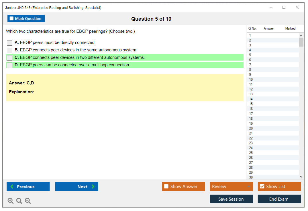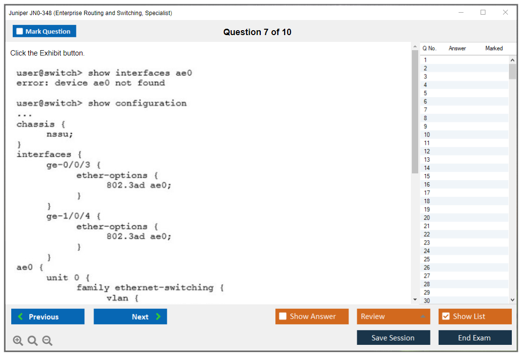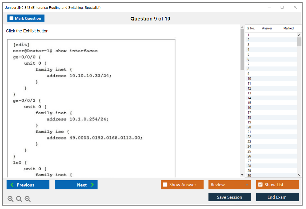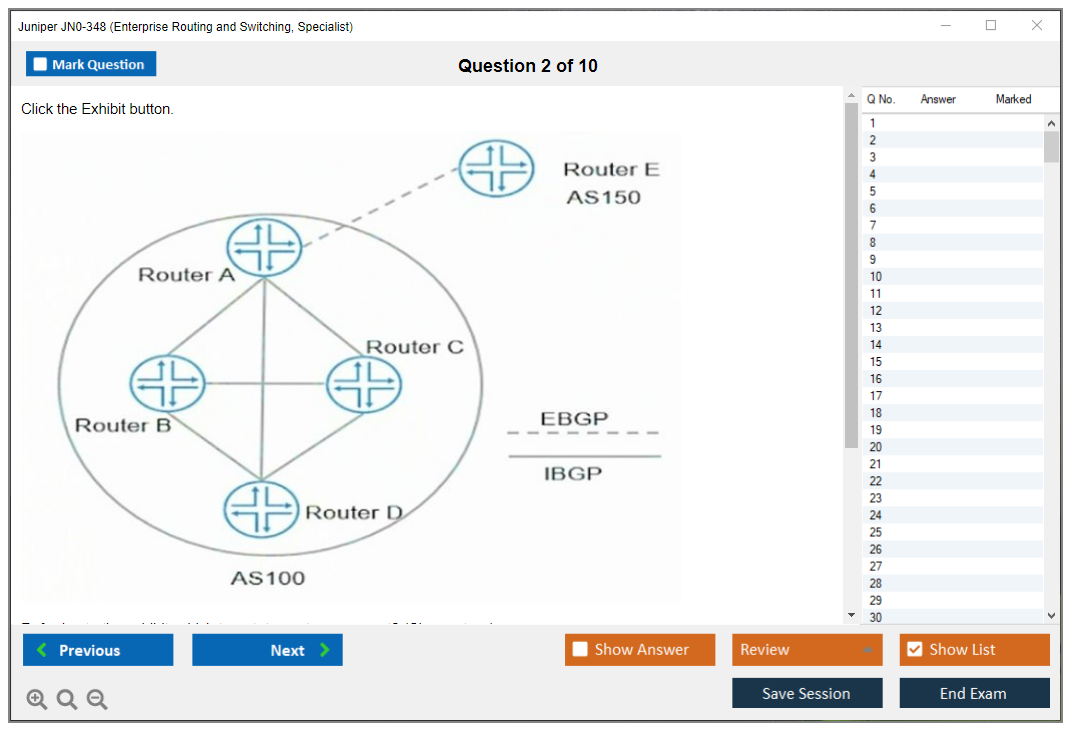 The Juniper JN0-348 (Enterprise Routing and Switching, Specialist) exam is designed to validate the skills and knowledge of networking professionals in implementing, configuring, and troubleshooting Juniper Networks Junos OS, as well as understanding advanced routing and switching technologies.