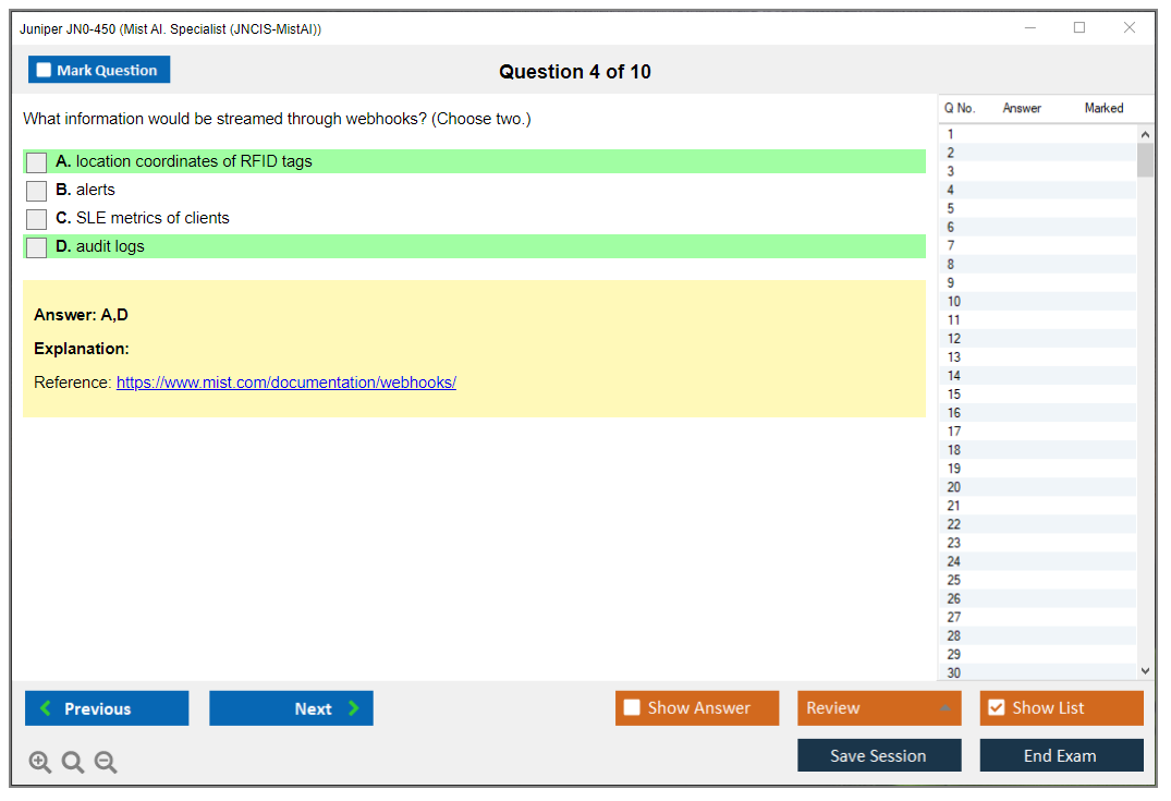 Note: Juniper JN0-450 (Mist AI. Specialist (JNCIS-MistAI)) will not receive any new updates.