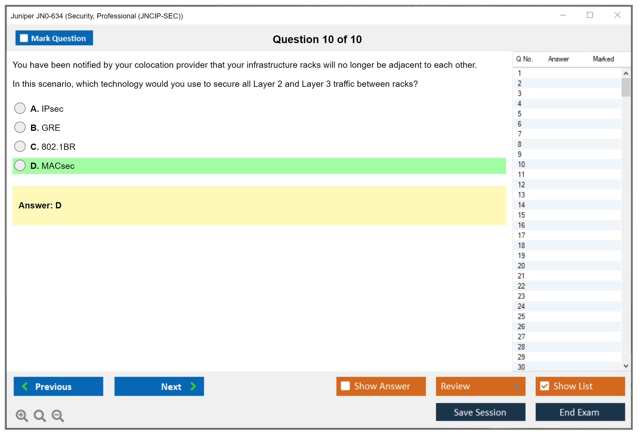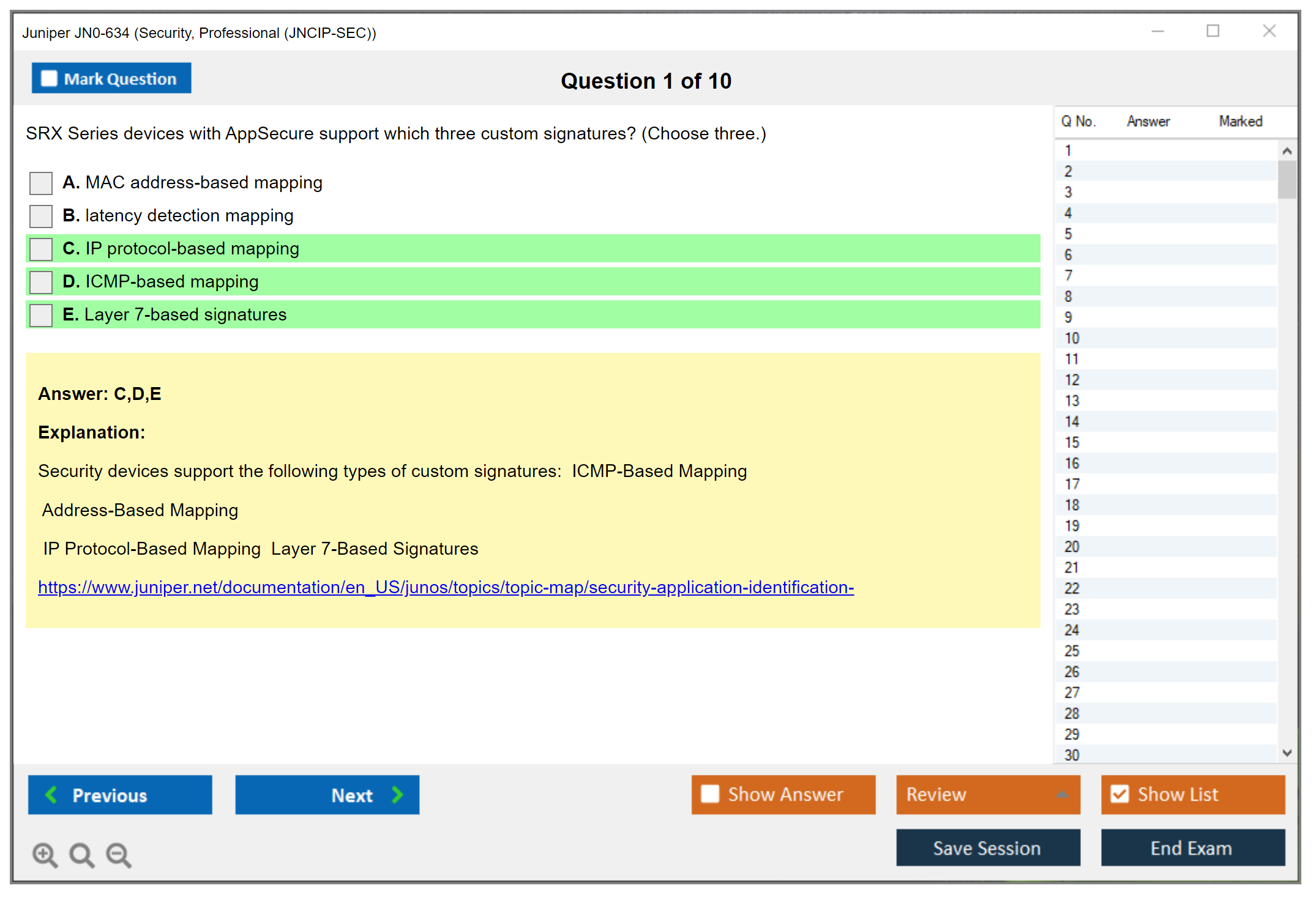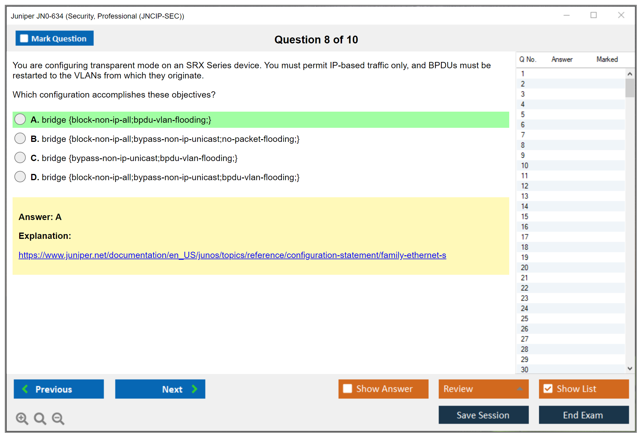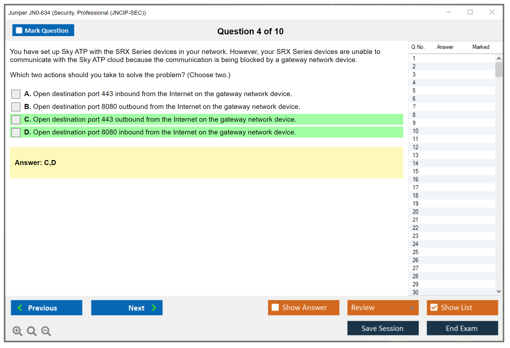 The Juniper JN0-634 (Security, Professional (JNCIP-SEC)) exam is designed to validate the skills and knowledge of networking professionals in the field of Juniper Networks security technologies. This exam is part of the Juniper Networks Certification Program (JNCP) and focuses on advanced security technologies and related platform configuration and troubleshooting skills.