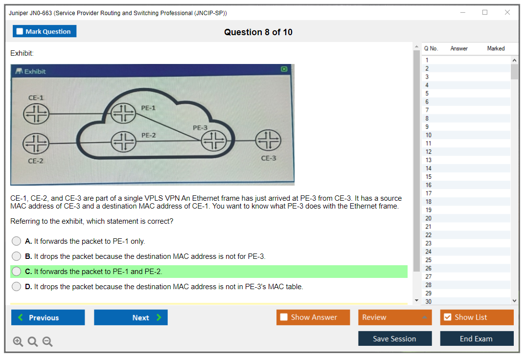 The Juniper JN0-663 exam, also known as the Service Provider Routing and Switching Professional (JNCIP-SP), is designed for experienced networking professionals with advanced knowledge of the Junos operating system and related technologies. It validates the candidate's ability to deploy, configure, manage, and troubleshoot Juniper Networks service provider routing and switching solutions.