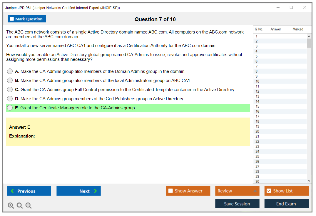 What are the Sample Questions of Juniper JPR-961 Exam?