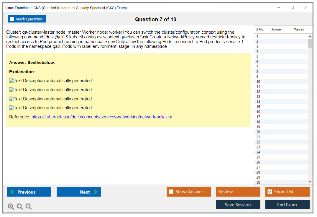 Sample questions for the Linux Foundation CKS Exam can be found on the official Linux Foundation training website or through various Kubernetes training resources and practice exams.