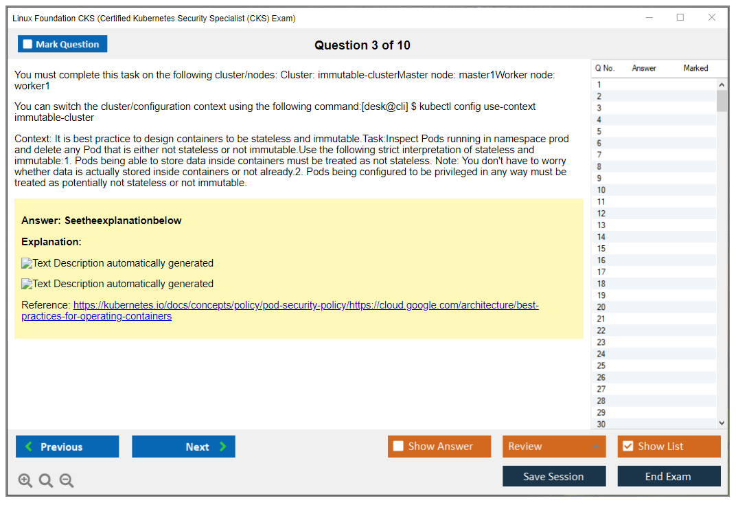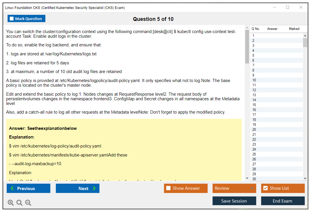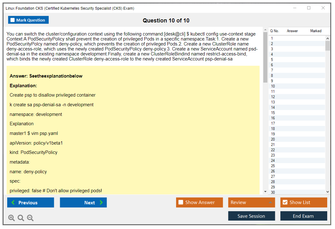The Linux Foundation CKS (Certified Kubernetes Security Specialist) Exam is a performance-based certification exam that tests candidates on their ability to secure Kubernetes environments. It focuses on best practices for securing container-based applications and Kubernetes platforms during build, deployment, and runtime.