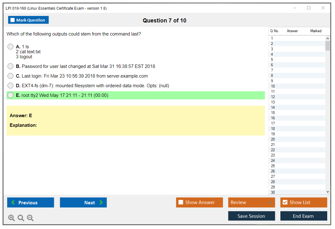 The LPI 010-160 (Linux Essentials Certificate Exam - version 1.6) is an entry-level certification exam offered by the Linux Professional Institute (LPI). It is designed to assess a candidate's foundational knowledge and skills in Linux operating systems and open-source software.