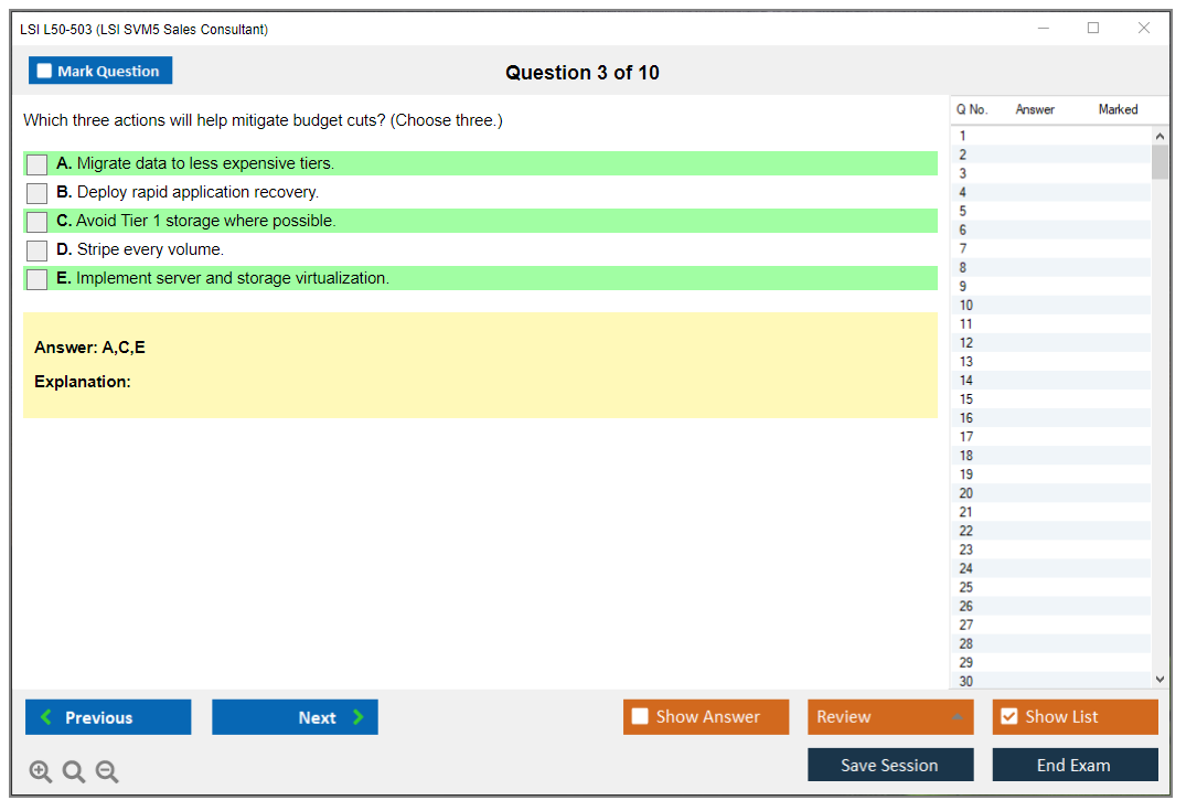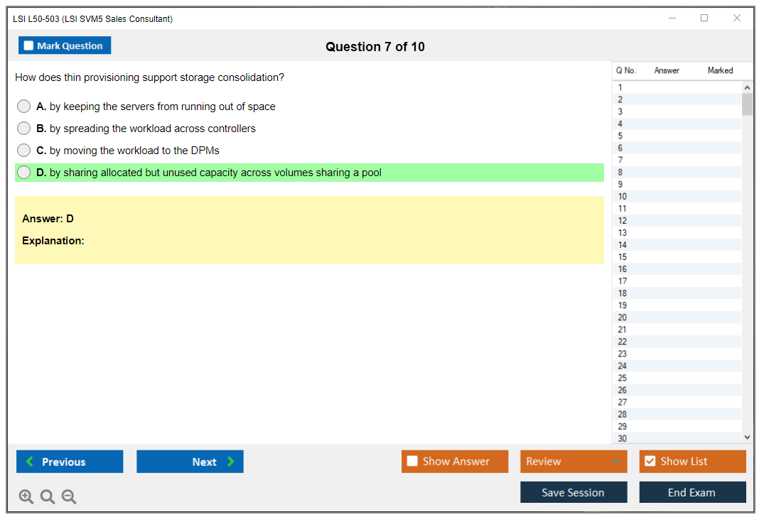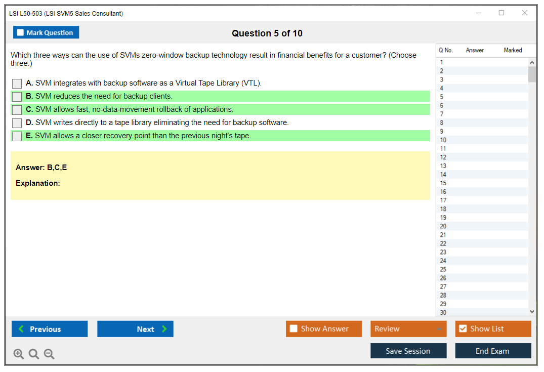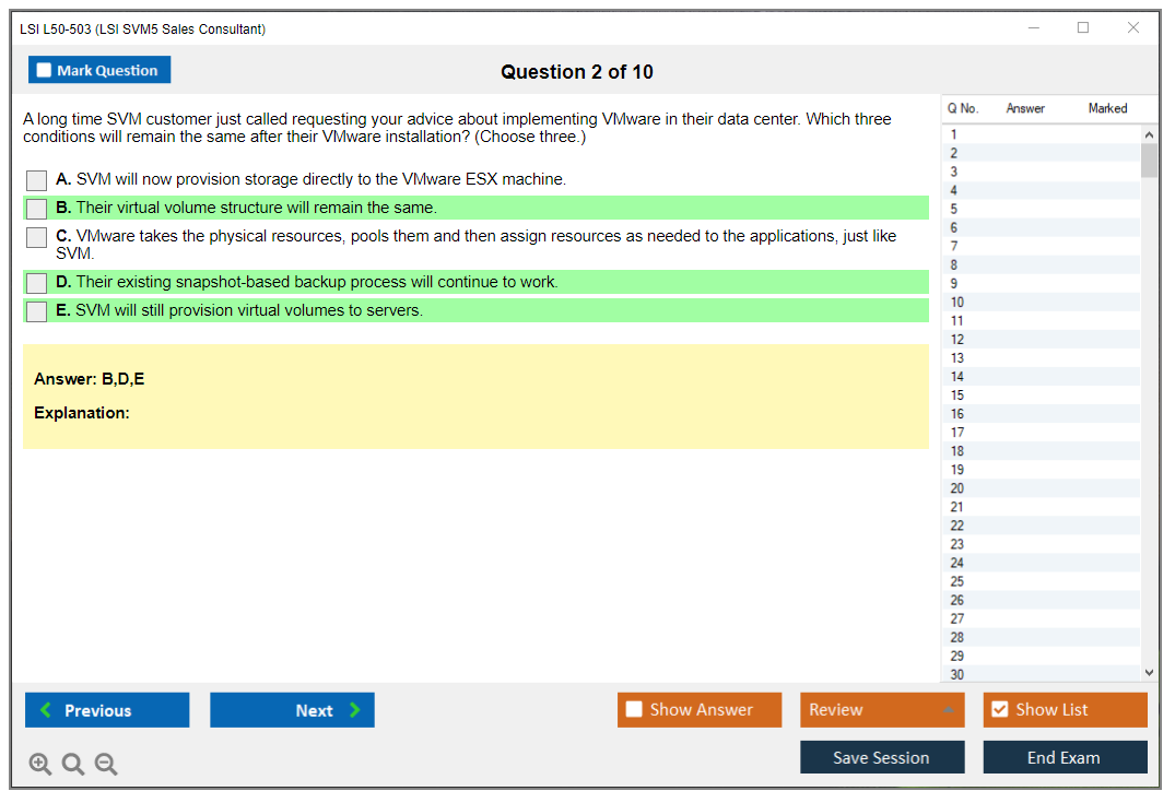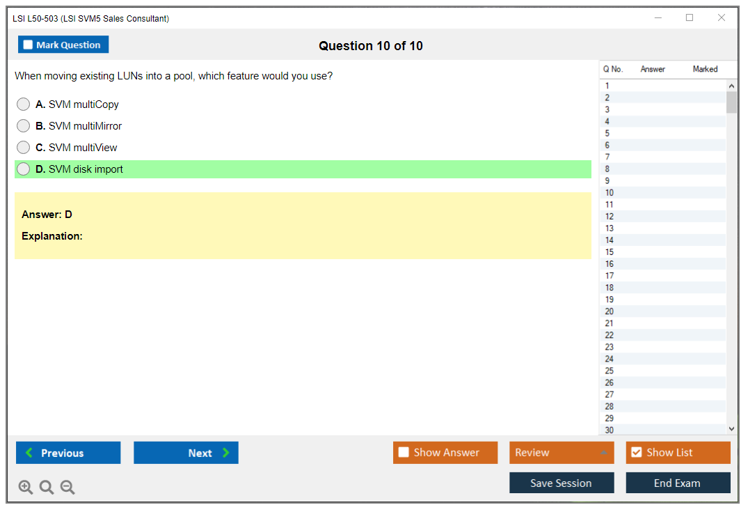 The LSI L50-503 (LSI SVM5 Sales Consultant) exam is designed to test the knowledge and skills of sales consultants in selling LSI SVM5 solutions. It covers various aspects of the product, including features, benefits, and competitive positioning.