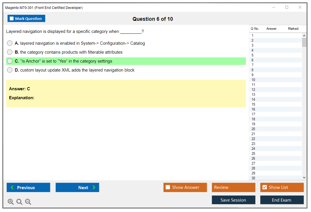 The question format of the Magento M70-301 Exam is multiple-choice questions.