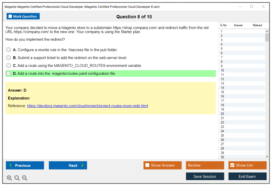 The Magento Certified Professional Cloud Developer Exam is designed to validate the skills and knowledge needed to deploy, test, troubleshoot, and operate the Magento Commerce Cloud environment.