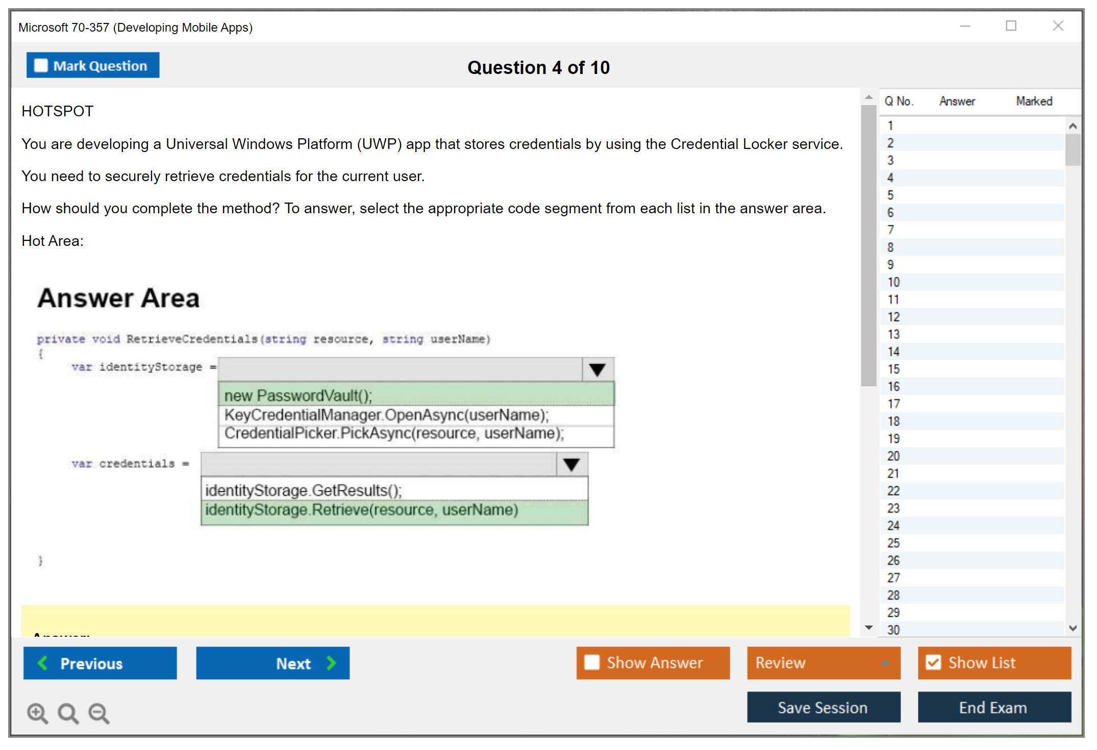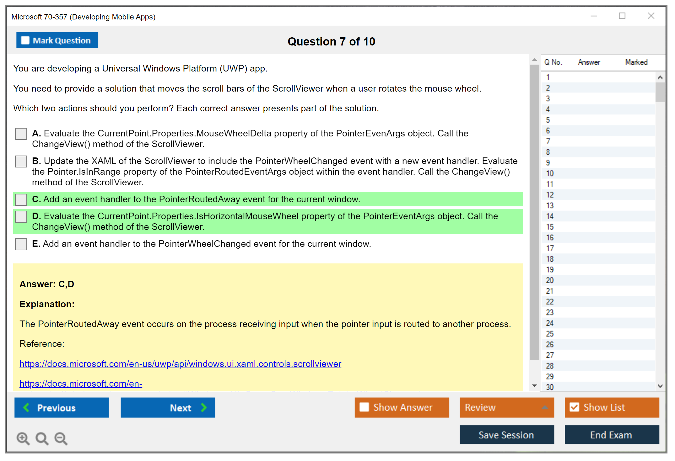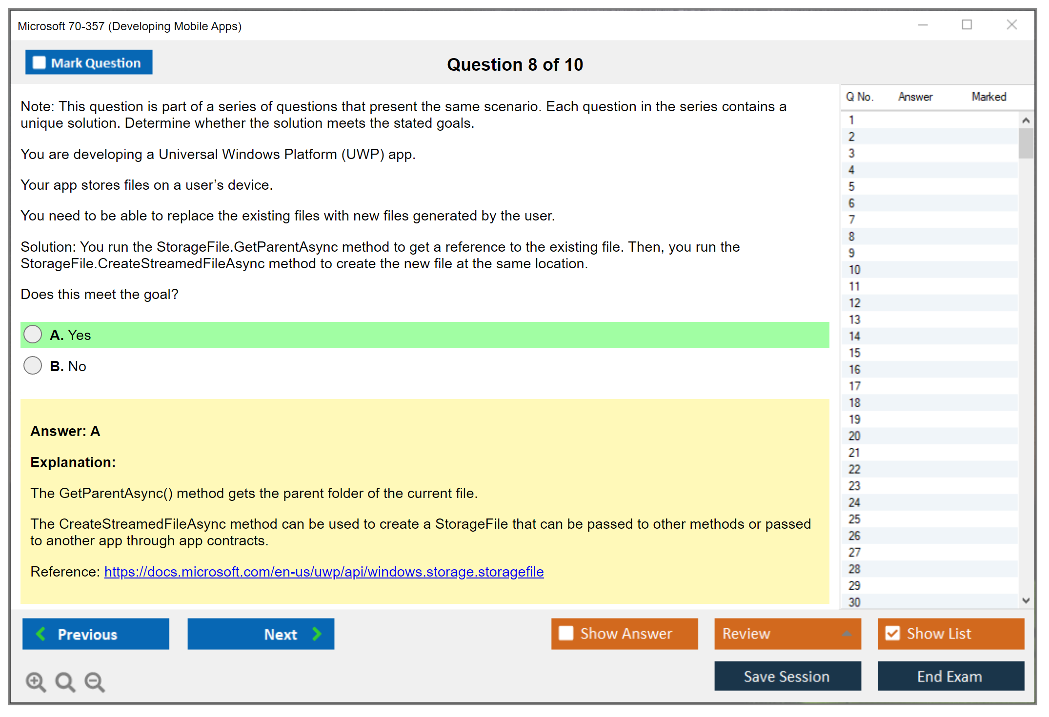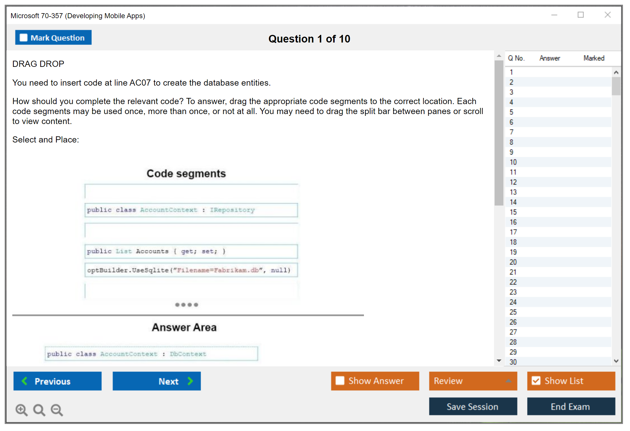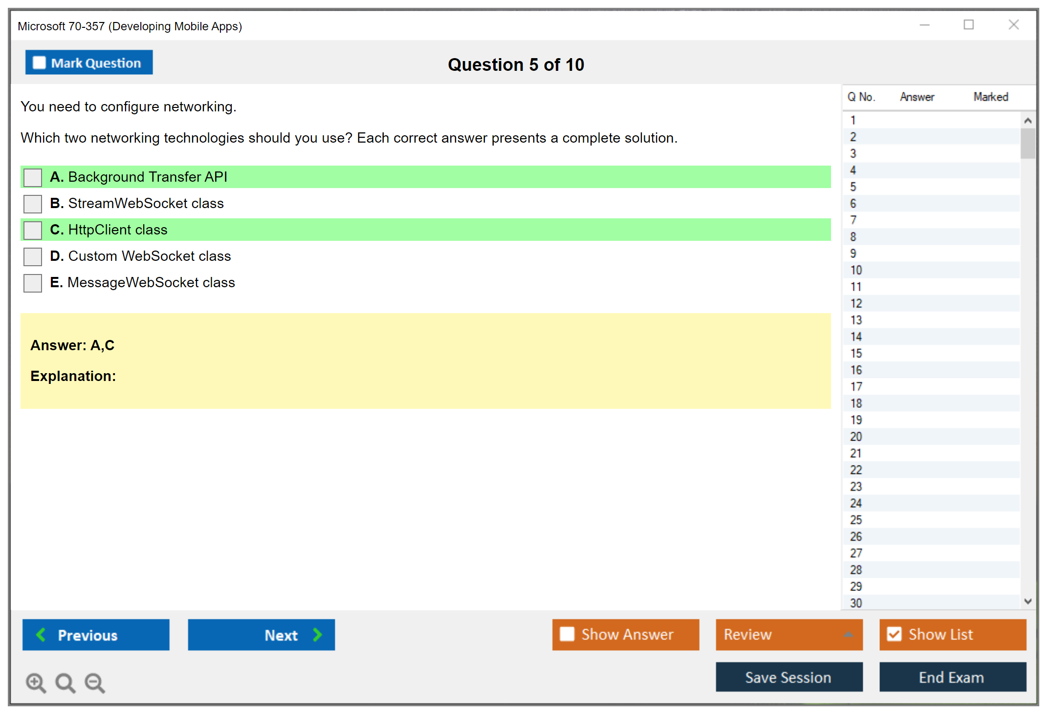 Note: Microsoft 70-357 (Developing Mobile Apps) will not receive any new updates.