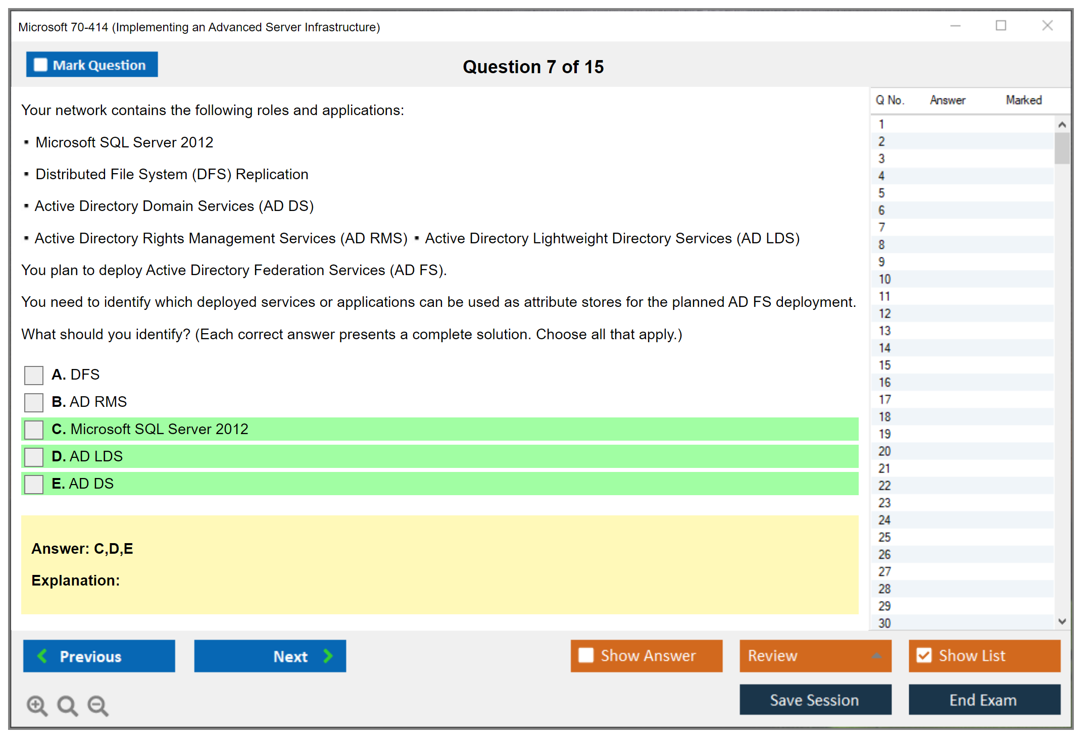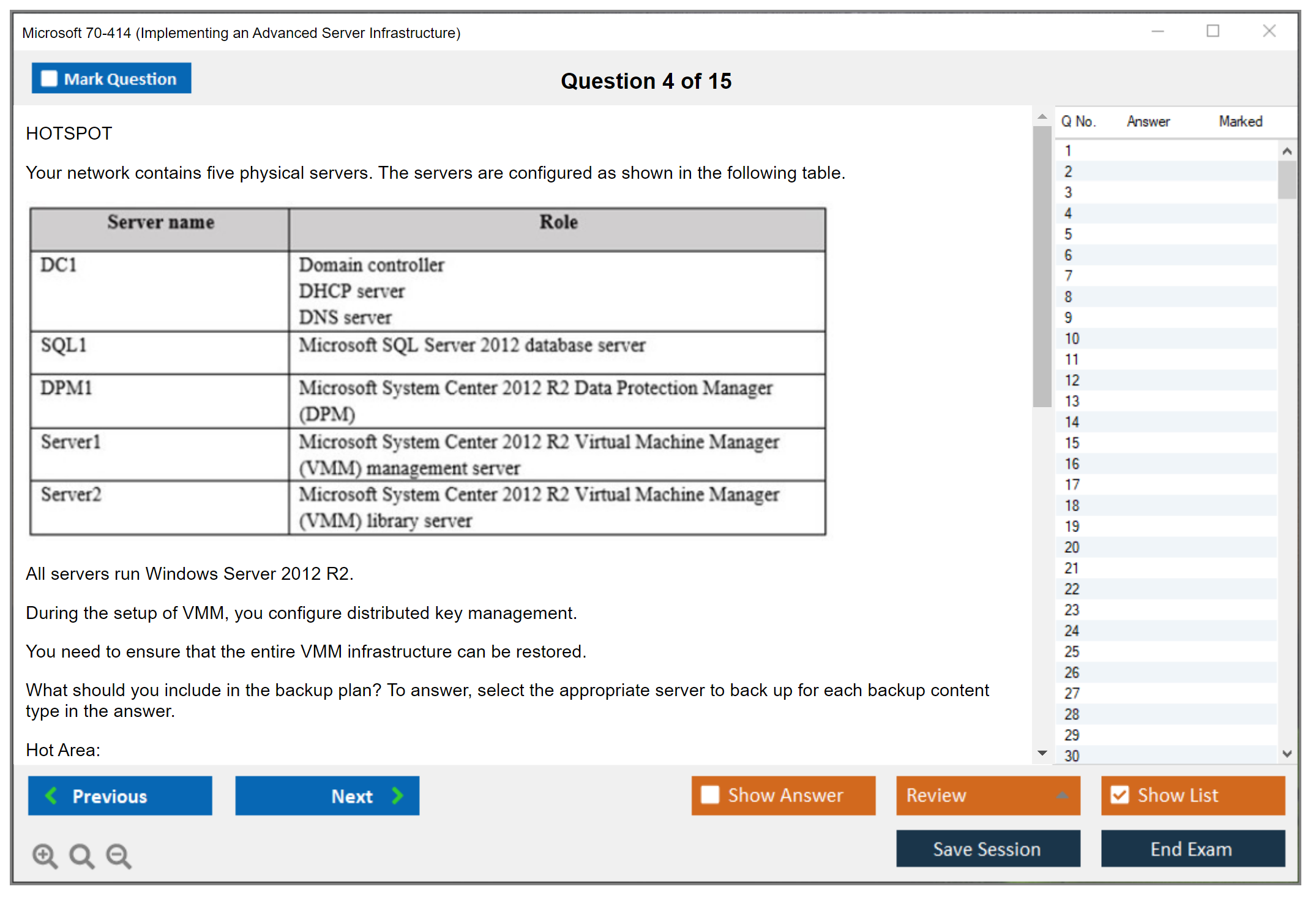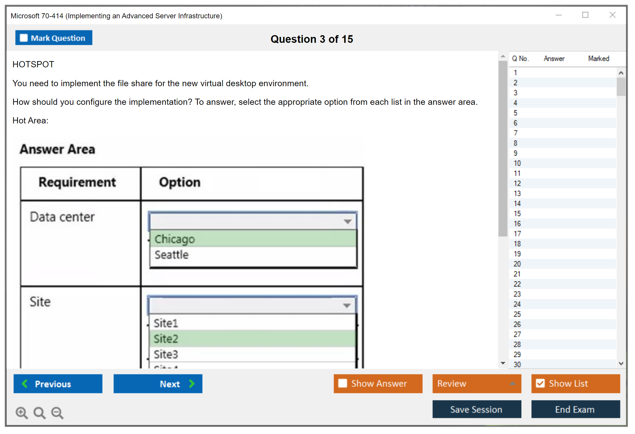 Note: Microsoft 70-414 (Implementing an Advanced Server Infrastructure) will not receive any new updates.