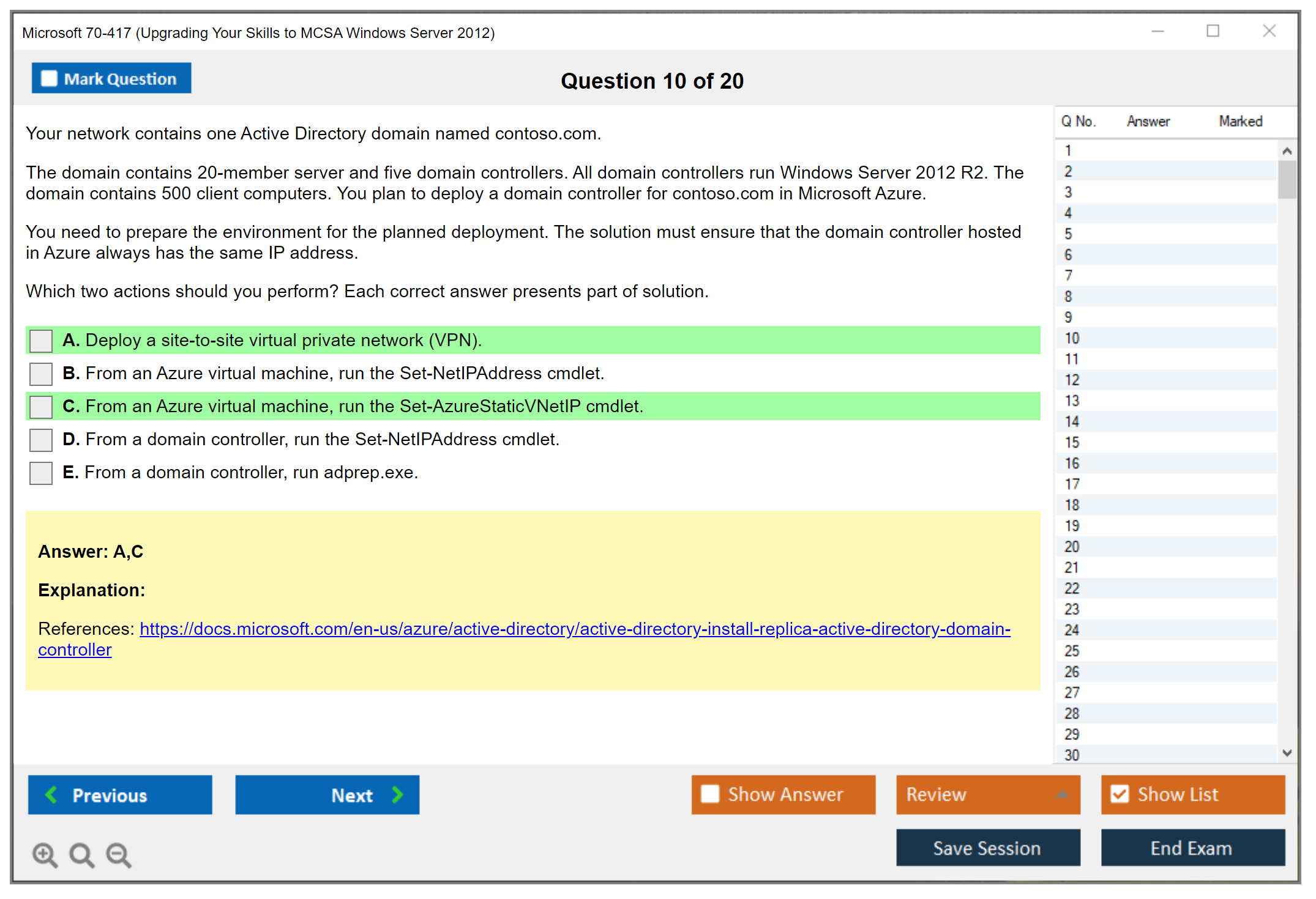 Note: Microsoft 70-417 (Upgrading Your Skills to MCSA Windows Server 2012) will not receive any new updates.