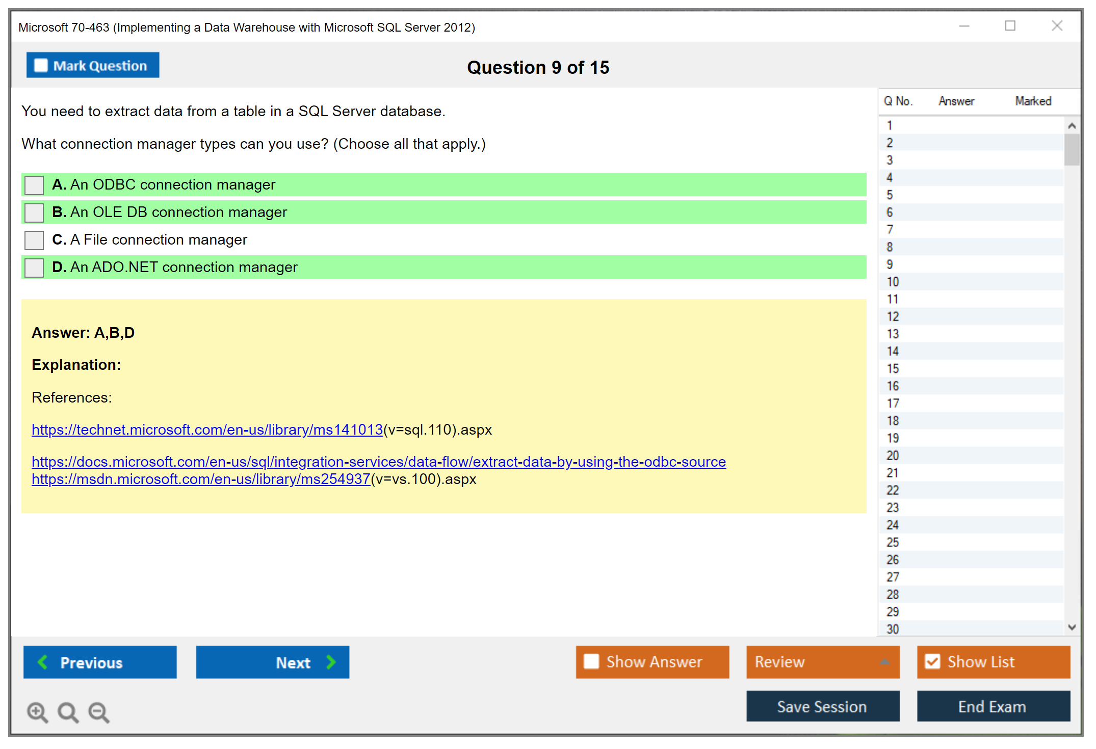 Note: Microsoft 70-463 (Implementing a Data Warehouse with Microsoft SQL Server 2012) will not receive any new updates.