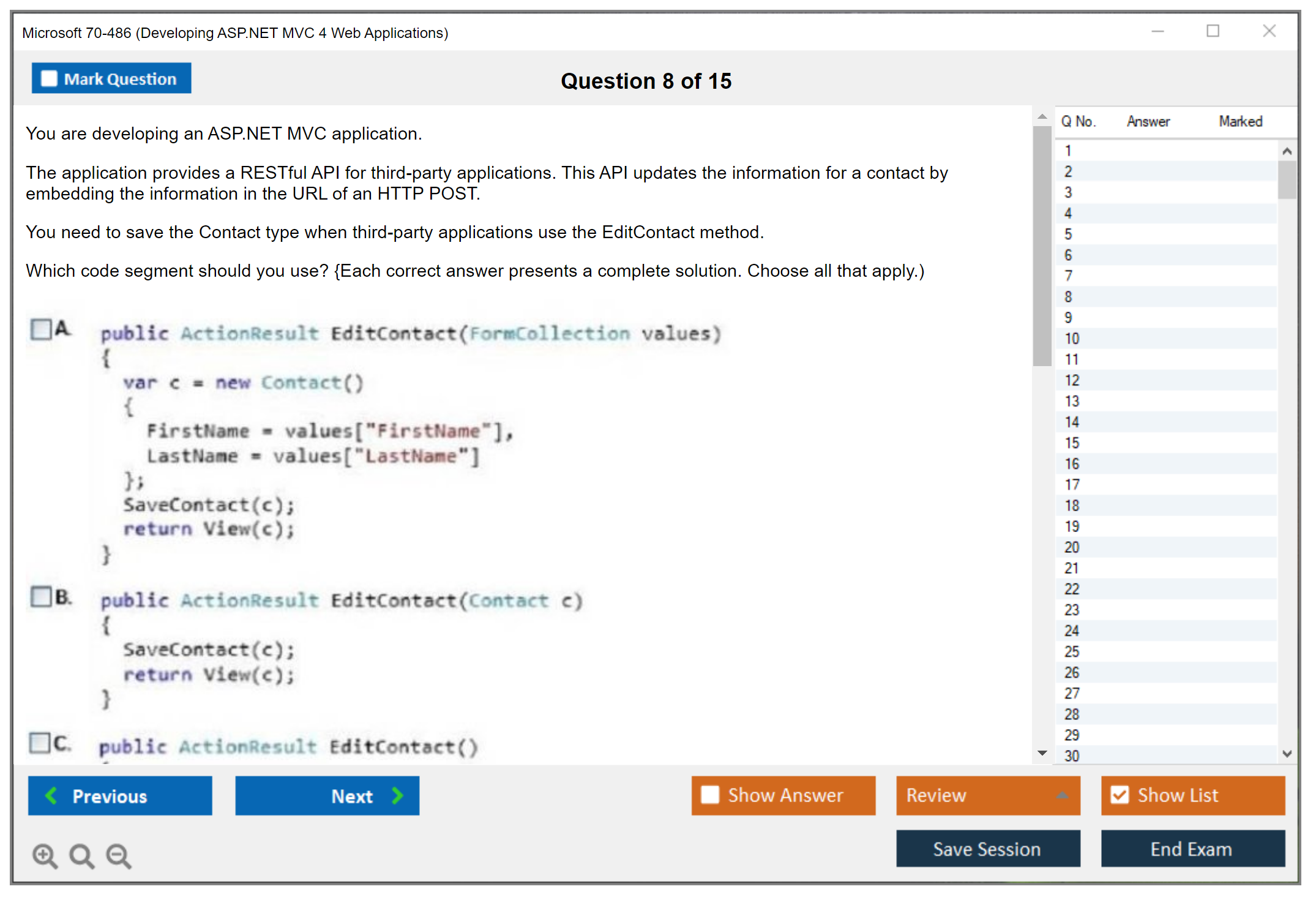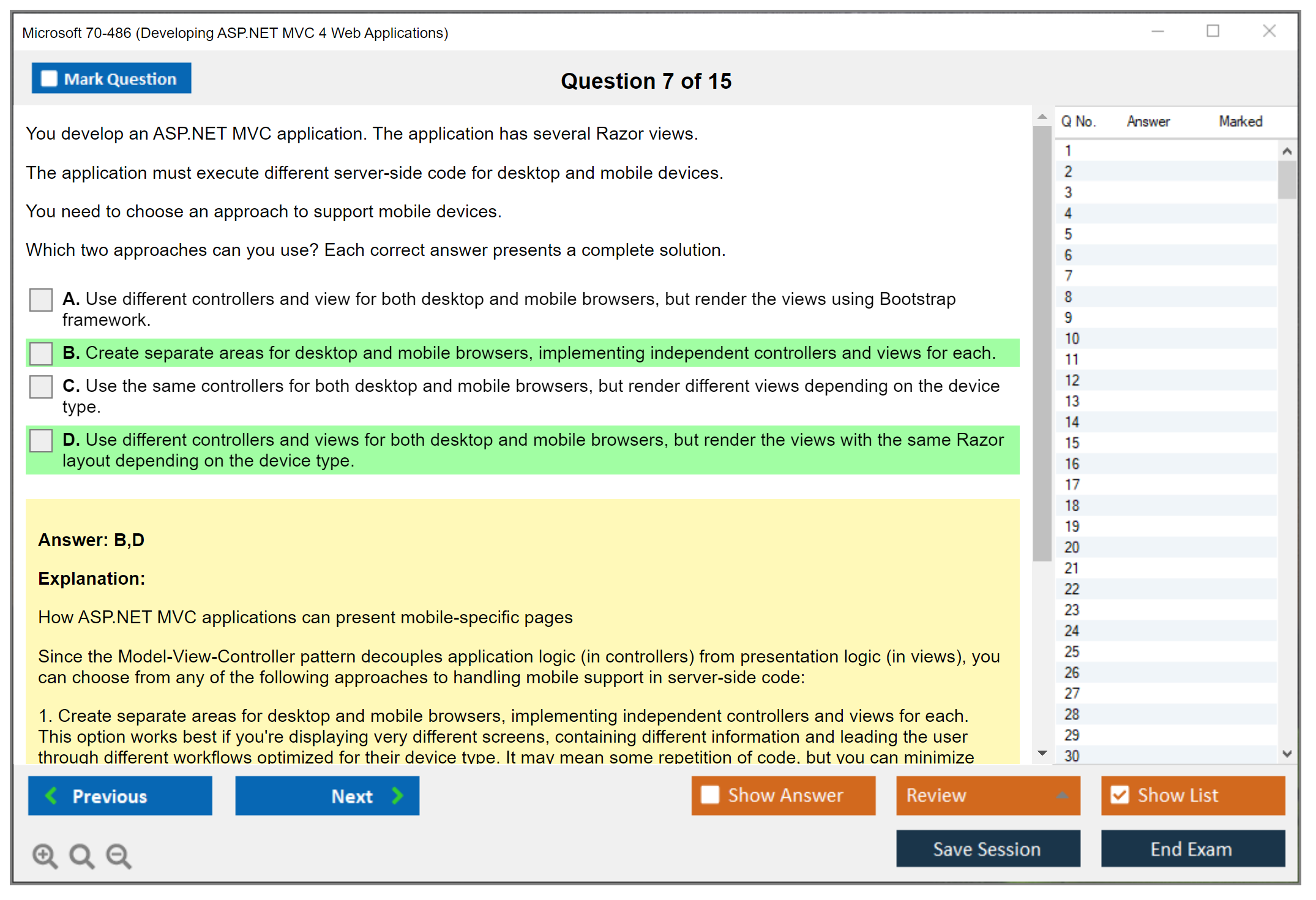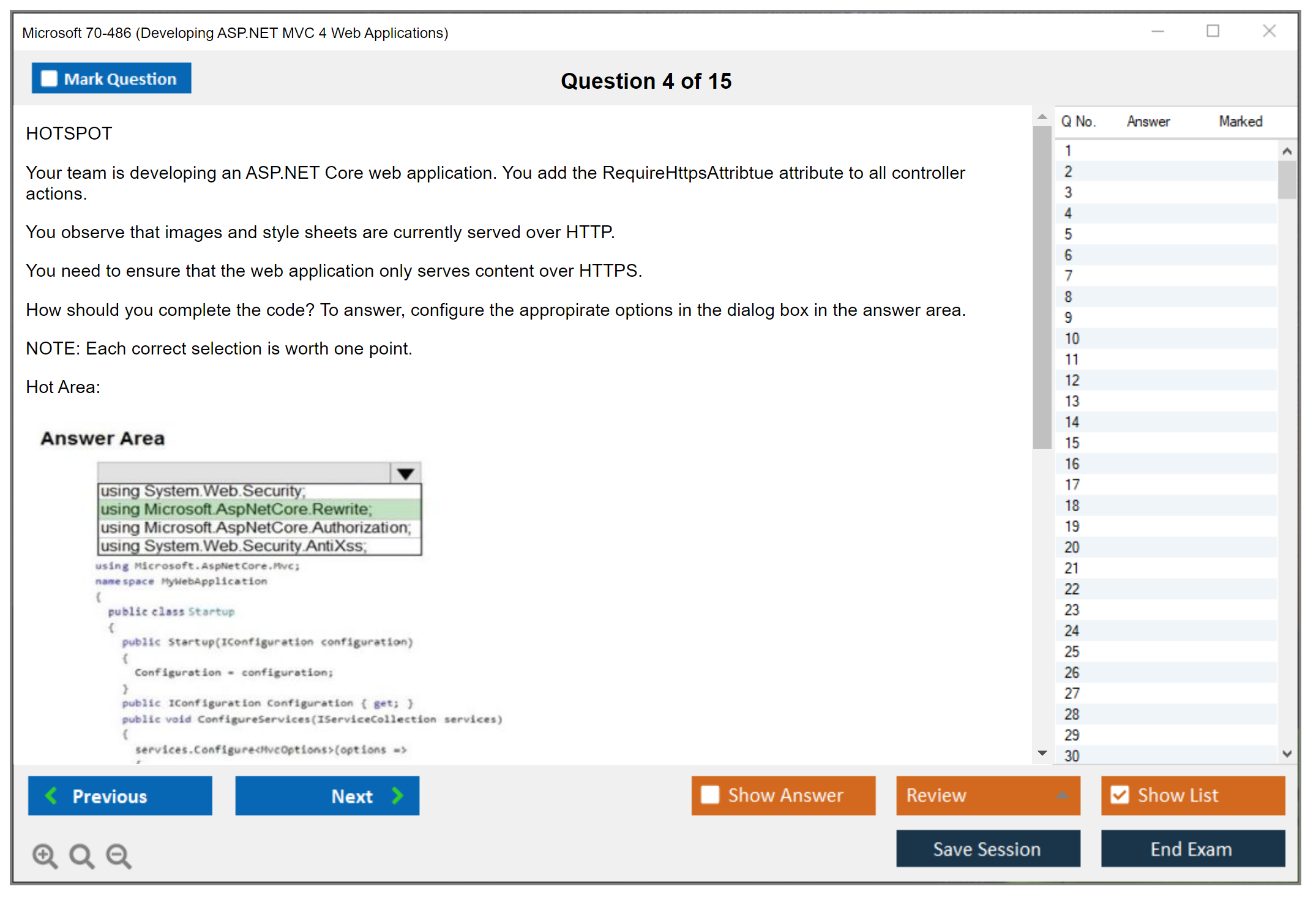 Note: Microsoft 70-486 (Developing ASP.NET MVC 4 Web Applications) will not receive any new updates.