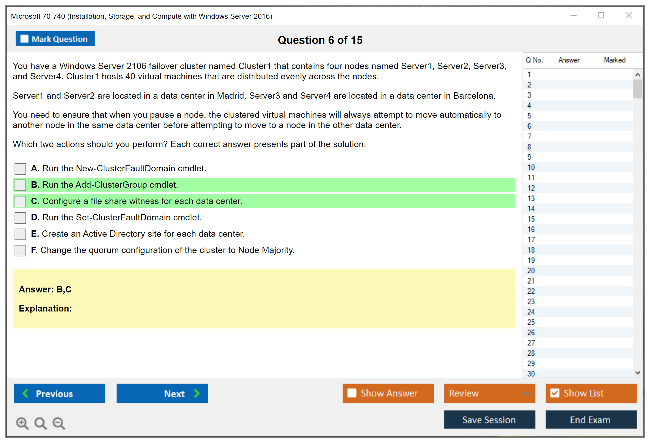 Note: Microsoft 70-740 (Installation, Storage, and Compute with Windows Server 2016) will not receive any new updates.